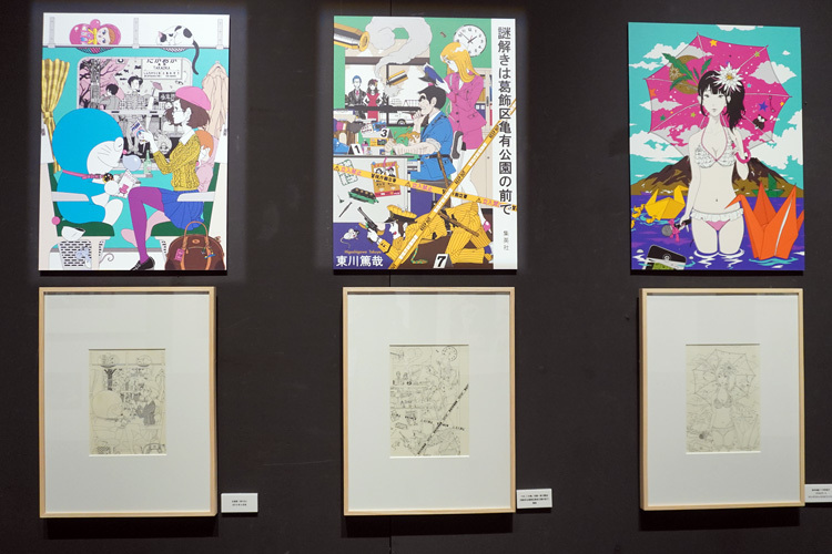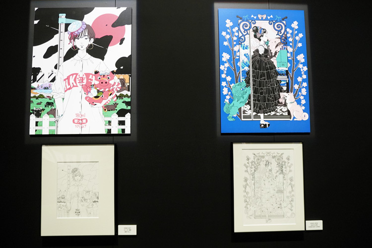 会場をある程度進むと、イラストの一定の傾向に気づく。例えば人物の多くが左の横顔で、つむじが跳ねている少女が多いこと。これらにはちゃんと理由があり、『謎解きはディナーのあとで』のイラストがあるセクションで解説されているので、見逃さずにチェックしよう。