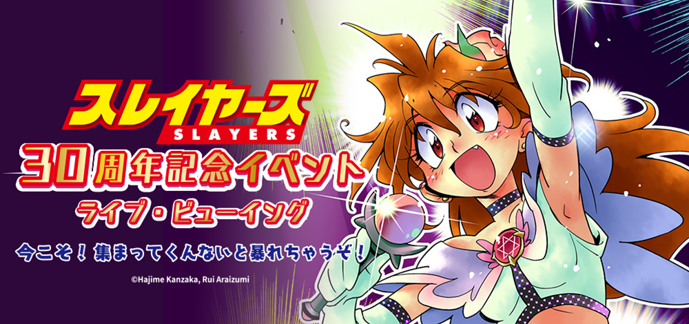 12月20日(日)ところざわサクラタウンジャパンパビリオン・ホールA(埼玉県)で行われる「スレイヤーズ30周年記念イベント~今こそ!集まってくんないと暴れちゃうぞ!~」夜の部の模様を、全国各地の映画館に生中継することが決定した。