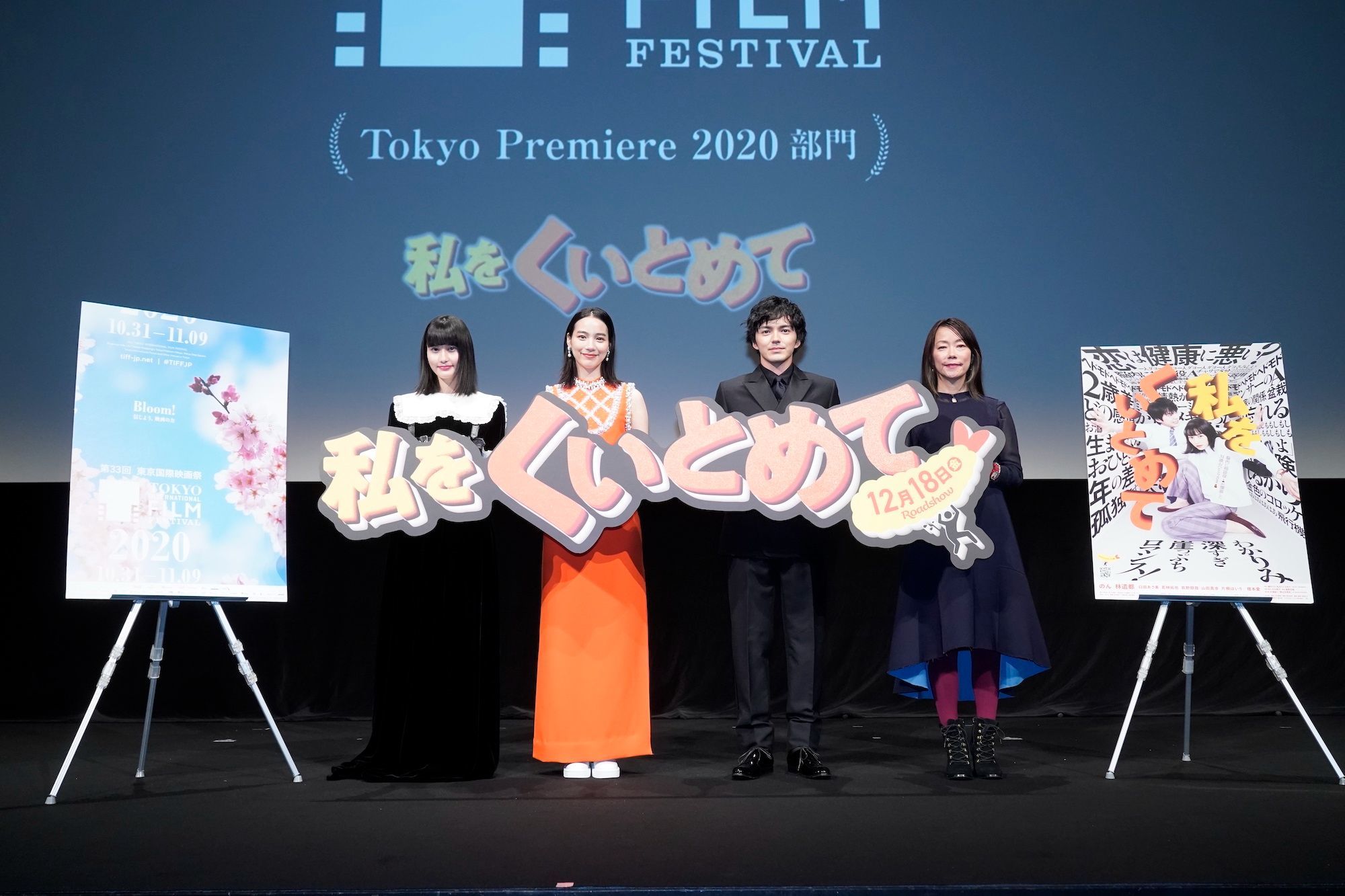11月5日(木)、東京・EXシアター六本木で行われた『第33回東京国際映画祭』の「TOKYOプレミア2020」部門で映画『私をくいとめて』が上映された。上映前の舞台挨拶には、主演ののん、林遣都、橋本愛、メガホンをとった大九明子監督が登壇した。