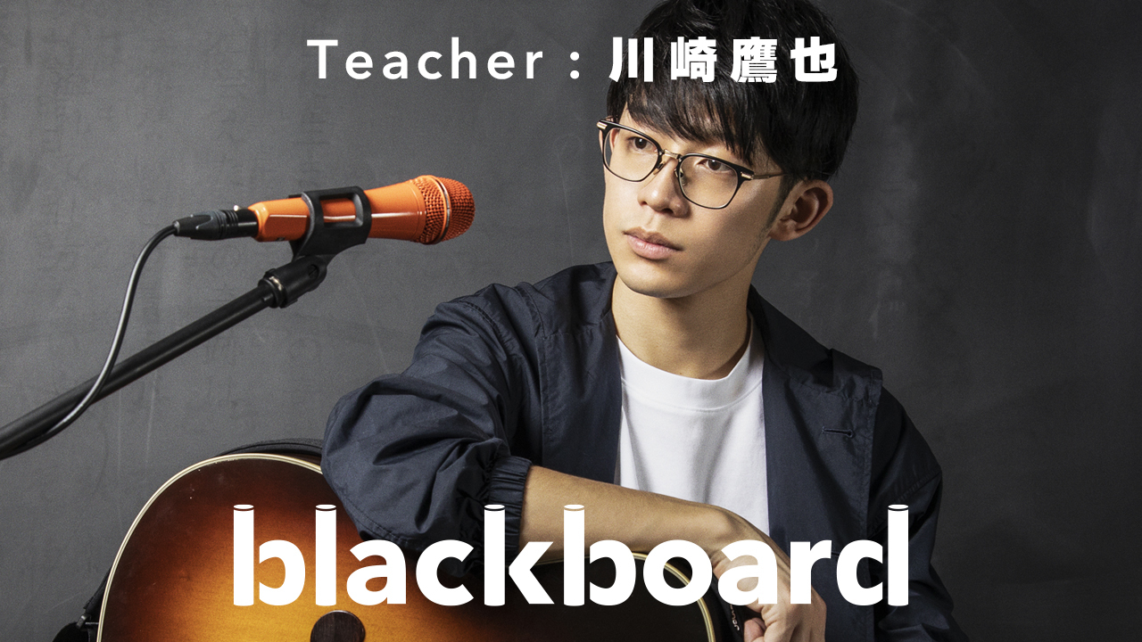 blackboardは、「もしもあのアーティストが自分の学校の先生だったら…」「もしもあのアーティストが自分の教室で歌を歌ってくれたら・・・」、そんな夢が叶えるために立ち上がったチャンネル。川崎は、前回披露した「魔法の絨毯」に続き、2回目の登場。2018年にリリースされた1stアルバム『I believe in you』収録の「君の為のキミノウタ(blackboard version)」を歌っている。