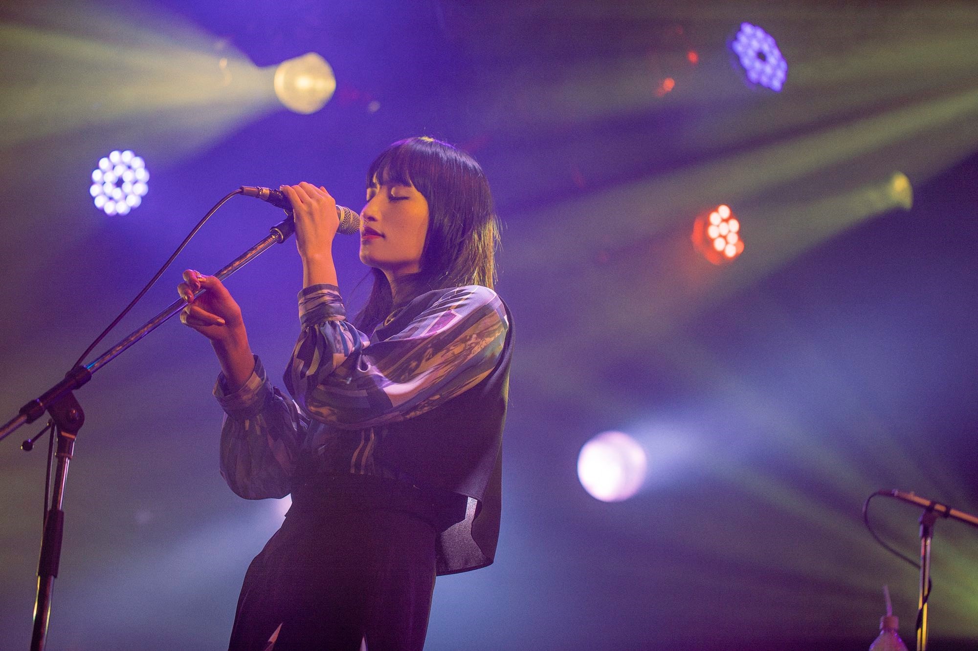 「私の愛する甘えん坊でさみしがりやで、ときどき爪を立てて来るそんな存在を歌った歌です。」との曲紹介から新EP収録の新曲「Catch me, if you can」「東京の精神」「memento」と披露したところで、瑞葵の「ここで立ってみませんか?」との呼びかけで会場全員がスタンディングスタイルとなった中で演奏されたアップテンポの2曲「裏街道ハイウエイ」「sayoshigure」で一気に会場はヒートアップ。