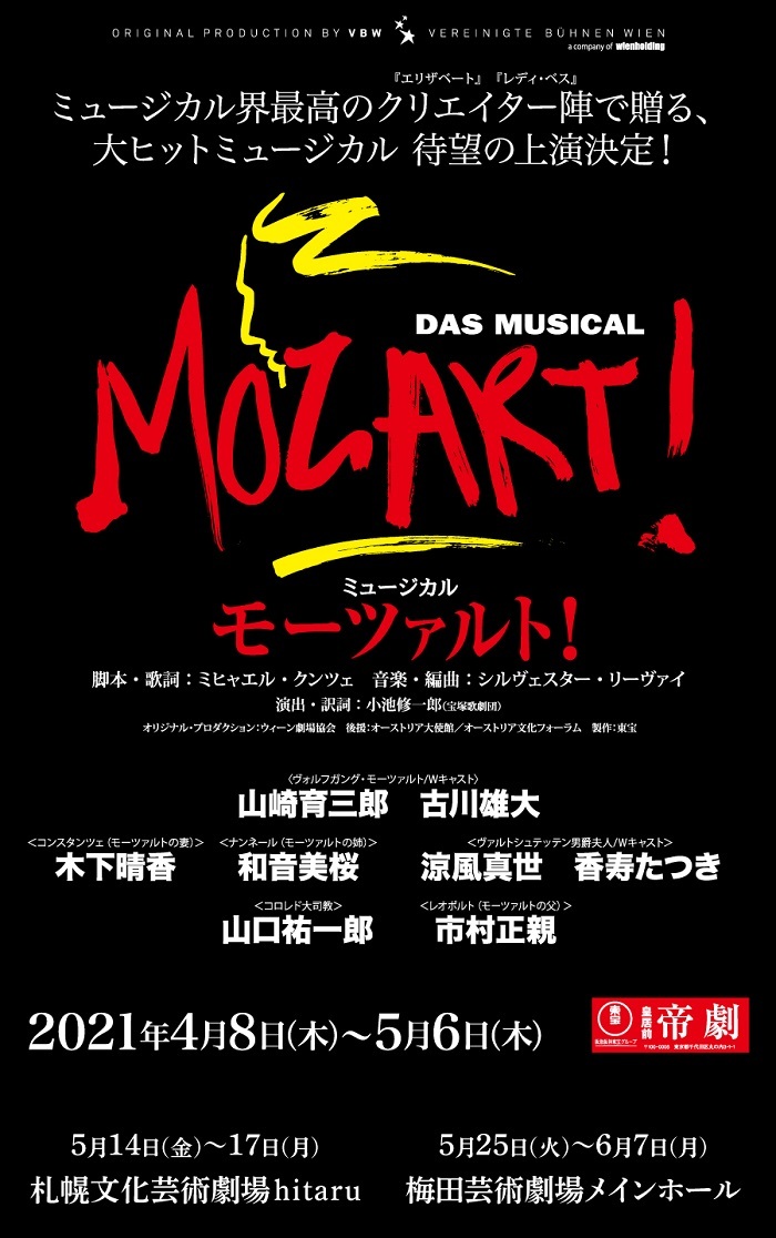 2021年4~6月に上演される、ミュージカル『モーツァルト!』の新たなキャスト、そして公演日程が発表された。