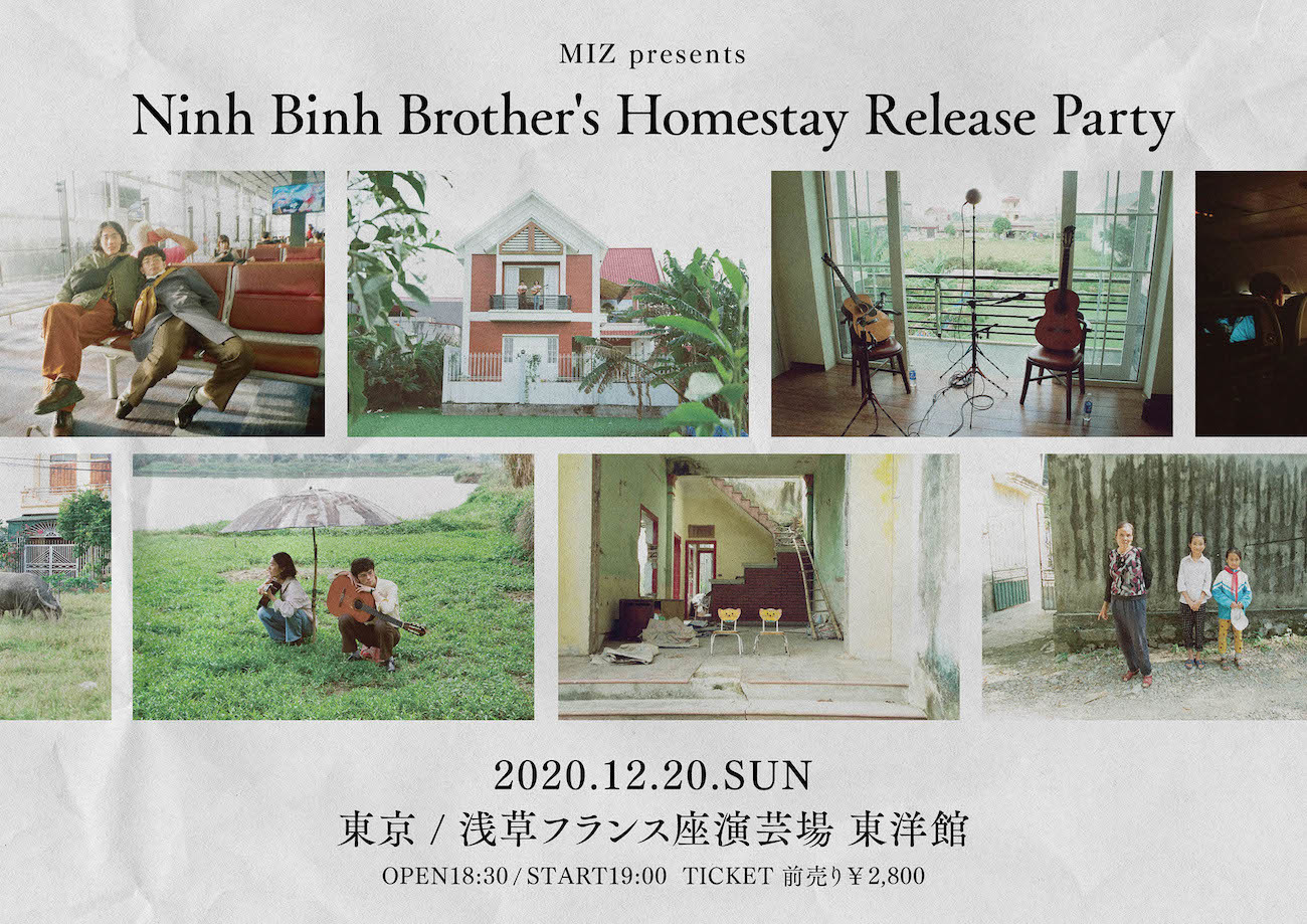 MIZは、2020年4月22日にデビューアルバム『Ninh Binh Brother's Homestay』をリリース。ベトナム滞在時にフィールドレコーディングで現地の環境音とアコースティックの音色を合わせることで室内にいながら旅行気分を味わえるような作品となっている。そして、今年6月には全国5箇所でのリリースツアーを予定していたが、新型コロナウイルス感染拡大防止の為、開催中止となっていた。