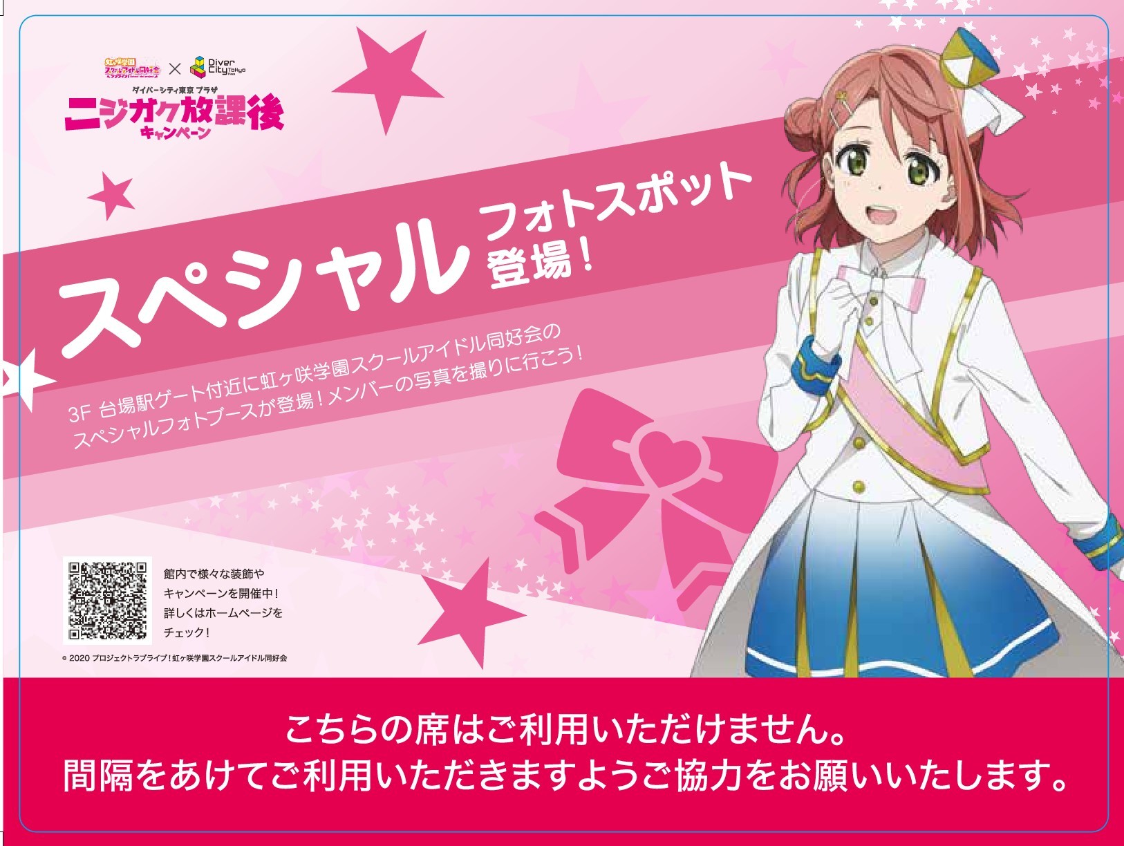 2020年11月13日(金)~2021年1月31日(日)までの期間、ダイバーシティ東京 プラザの館内にTVアニメ『ラブライブ!虹ヶ咲学園スクールアイドル同好会』のメンバーが登場。2Fフードコートをはじめとした館内各所の装飾や、3F台場駅ゲートのフォトスポットなどが展開される。