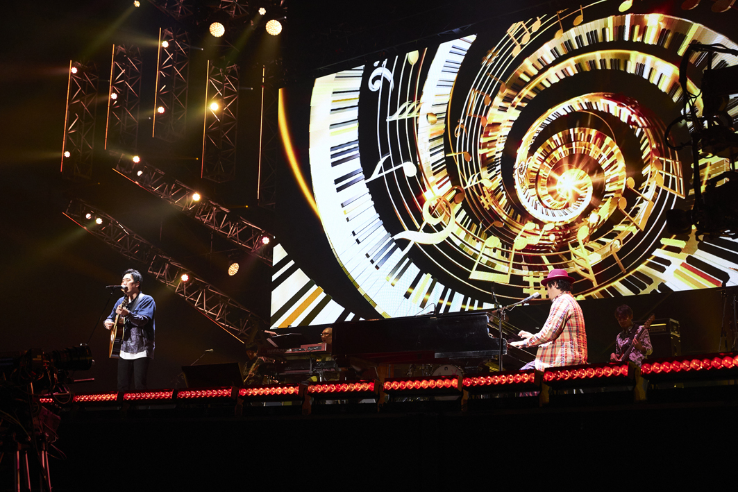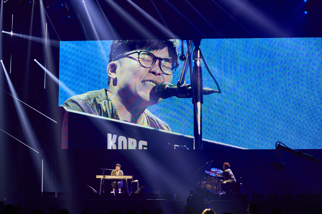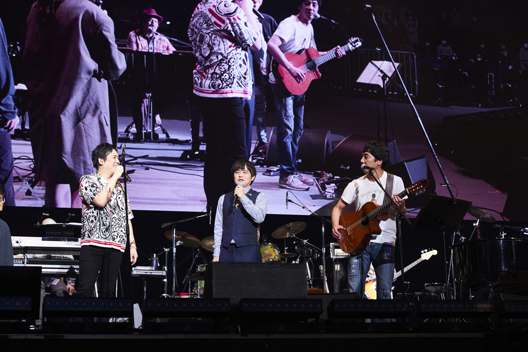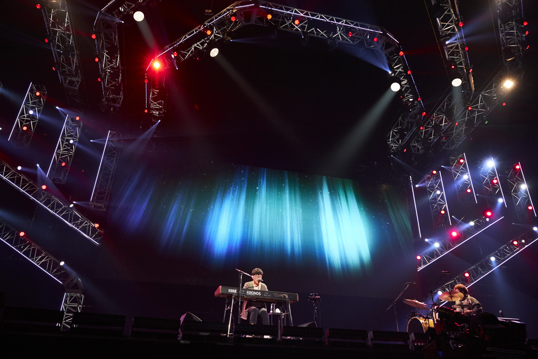 スキマスイッチは昨年に続いての参加。先ずはミディアム・テンポの楽曲を2曲続け、会場をあたためる。今年の無観客での配信ライブを振り返り、広い会場を見廻して大橋卓弥は、人前で歌えることが嬉しいと感慨深げ。無観客ライブはMCで何か喋っても反応がないのがいちばん辛いとこぼすと大きな拍手が湧く。「嬉しいです!拍手って大好物です!」とオーディエンスのリアクションに応えるべく「盛り上がるやつ、やりますか!」と「ユリーカ」になだれ込む。「Ah Yeah!!」では総立ちとなった場内の盛り上がりもピークに達し、サビではタオルが一斉に上に投げられオーディエンスは身体全体で興奮をスキマスイッチに伝える。これには大橋も感激し「お客さんが目の前にいてくれる事が本当に幸せだなと実感しました!」と最後は「奏(かなで)」をお客さんにプレゼント。最初の1コーラスは大橋の歌と常田のピアノ伴奏のみで演奏する。客席からの歓声が無いと、会場の隅々まで歌声が届くことをあらためて実感。会場を徐々にあたため、頂点まで持ち込むと最後はじっくりと聴かせる。35分という短い時間の中で一本のコンサートを見たように思わせる、見事なステージであった。