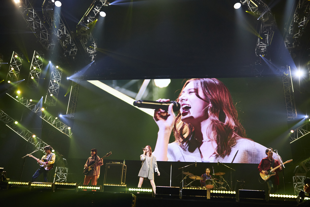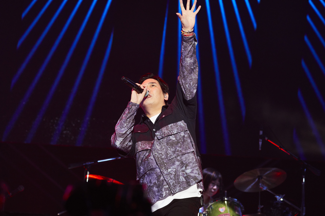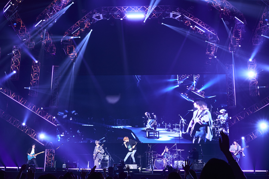 Novelbrightは今年8月にメジャーデビューを果たしたばかりのニューカマー。初めてあがった横浜アリーナのステージにはメンバーも感無量。続いては、アコースティック・ギターの響きと竹中のボイスをじっくり聴かせるバラード「夢花火」を披露。勢いのある曲だけではないバンドのもうひとつの一面を見せる。そしてステージは再びアップチューンに。「もっともっと横浜アリーナをロックしていきます!」の掛け声とともに最新シングルの「Sunny drop」とドライブ感溢れるロックンロール・ナンバー「ランナーズハイ」で会場の温度を急上昇させる。この日は初めて彼らをみるお客さんが多かったが、気がつけばアリーナ後方まで立たせている。歯痒い日々が続いていますが、音楽やりたいし、バンドやりたいしと模索しながらここまで走りきりましたとコロナ禍以降を振り返る。ずっと憧れていたこのステージに立てた事に感謝し「次は俺たちの力で!」と横浜アリーナでの公演を宣言し、最後に「拝啓、親愛なる君へ」を歌う。初めてのお客さんが多いはずなのにサビではみんなが一緒に歌っている。竹中も両腕を大きく掲げてゆっくりと左右に降って、これに応えた。