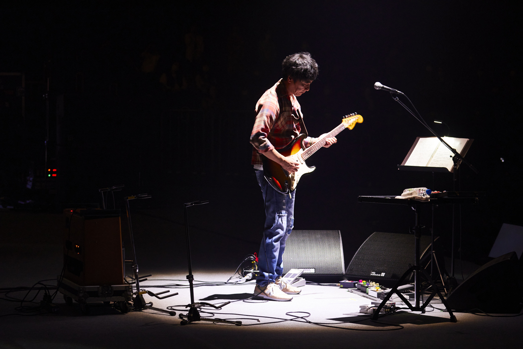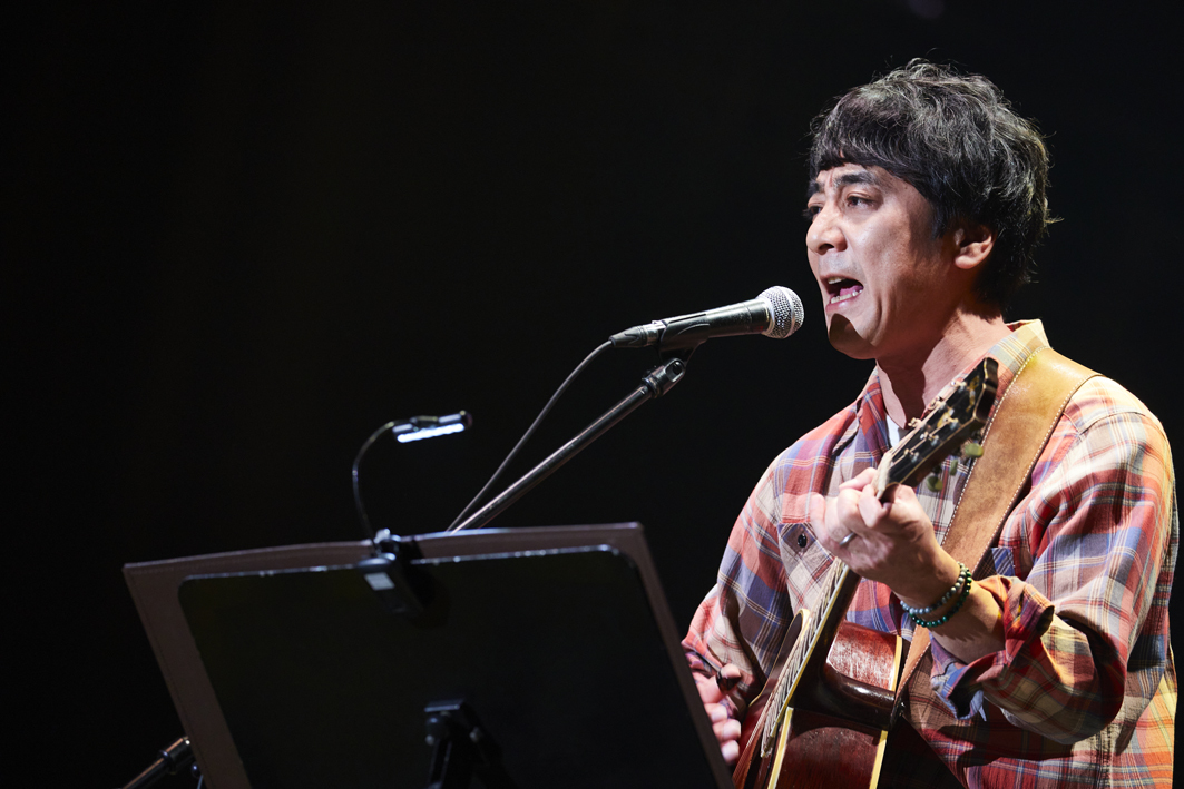 『バズリズムLIVE 2020』のトリは山崎まさよし。ネルシャツにデニムというシンプルな出で立ちでギターを抱え歌い出す。たちまち場内はふんわりとした暖かい空気に包み込まれ、お客さんもホッとする。一瞬で客席の心を掴む山崎まさよしの声は魔法のようだ。「お元気でしたか? 色々と大変でございますが、ライブに来てくれて何よりです」と優しく語りかけ「One more time, One more chance」「影踏み」を歌う。どちらも山崎まさよしが主演し篠原哲雄監督がメガホンを取った『月とキャベツ(1996)』と『影踏み(2019)』の主題歌。新旧の映画曲は骨太の演奏のサポート・バンドをバックに圧巻の熱唱で歌い切る。ラテンのリズムの「Plastic Soul」で会場を熱くさせ、ラストはデビュー25周年記念のEP『ONE DAY』収録の新曲「Updraft」を披露する。果てしなく広がる海原や大地を思わせるスケールの大きな曲。サビの”La La La”は本来なら、みんなでシンガロングするパートだが、「心の中で歌ってね!」と静かに熱く盛り上げ、貫禄のステージを見せつけた。