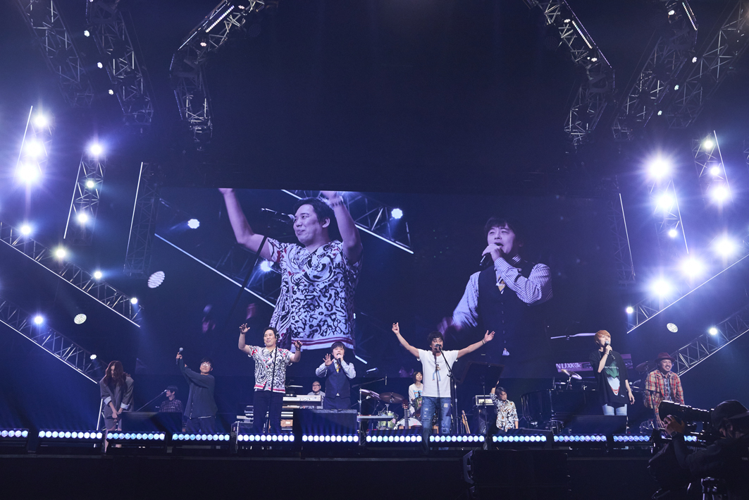 アンコールにはAkari(FAITH)、さかいゆう、スキマスイッチらもステージにあらわれる。集まったメンバーを見廻し、山崎まさよしは思わず「なんかプチ・オーガスタキャンプみたいやな…」とつぶやく。確かにアンコールにはオフィス・オーガスタ所属のアーティストが揃った。ライブの定番であるコール&レスポンスが出来ない代りに、大橋はクラッピングをお客さんに実演指導し「気持ちで騒ぎましょう!」とスキマスイッチの「全力少年」が始まる。観客も教わったクラッピングを器用にこなし、出演者と共に楽曲に参加する。続いてはバカリズムとNovelbrightの竹中雄大のふたりがステージに加わり、山崎まさよしの「セロリ」に。1番は山崎~さかいゆう~大橋&山崎、2番はバカリズム→竹中雄大→Akari(FAITH)&大橋と歌い継ぐ。この豪華な競演に観客も右腕を大きく左右に降って応える。曲間のラップ・パートはバカリズムが挑み、見事に歌い切ると客席から大きな拍手が。ラストでは大橋卓弥のブルースハープと竹中雄大の口笛のバトルで締め、4時間超に及んだ『バズリズムLIVE 2020』の2日目を終えた。