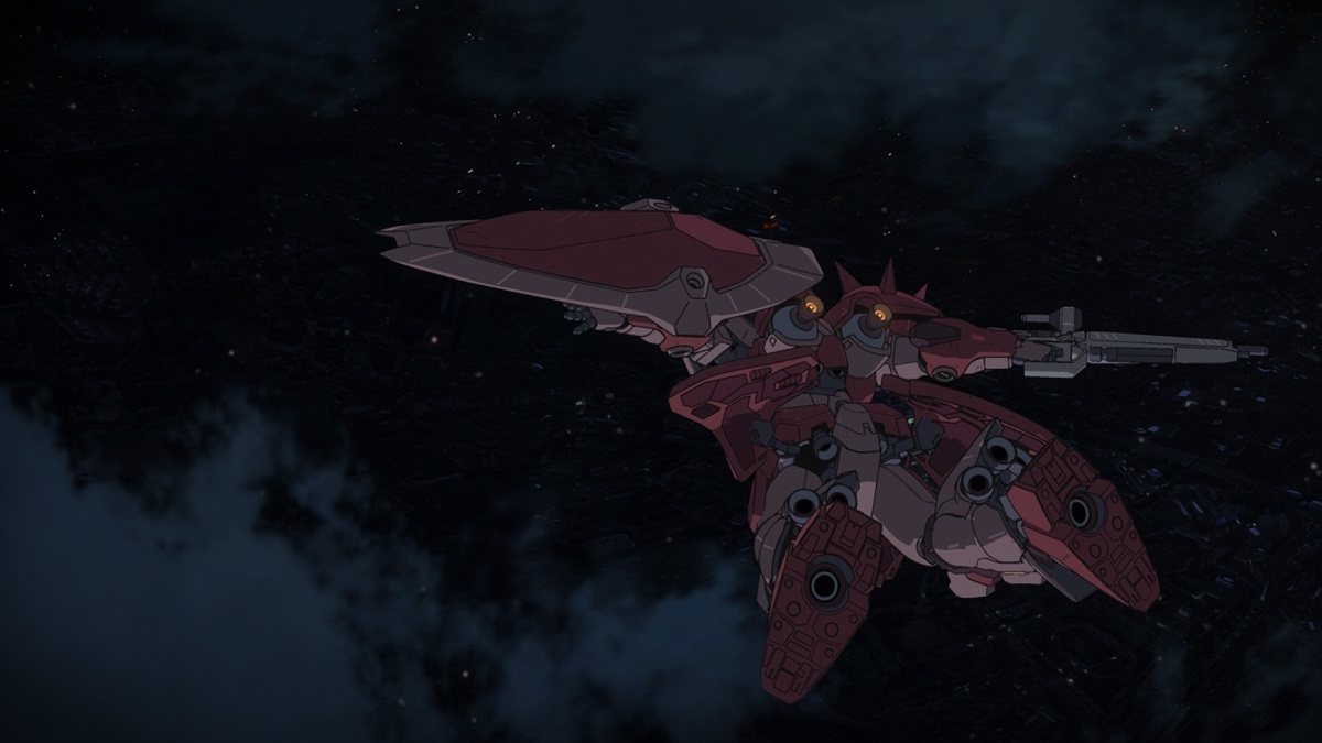 マフティーがアデレード会議襲撃のために準備した、アナハイム・エレクトロニクス社製の第五世代モビルスーツ。ペーネロペーとは姉妹機にあたるが、機体内蔵型のミノフスキー・フライト・ユニットを実装している点については、より画期的技術が投入されている。頭頂高は26mを越え、腕部も標準的なモビルスーツサイズよりもかなり大型化してお