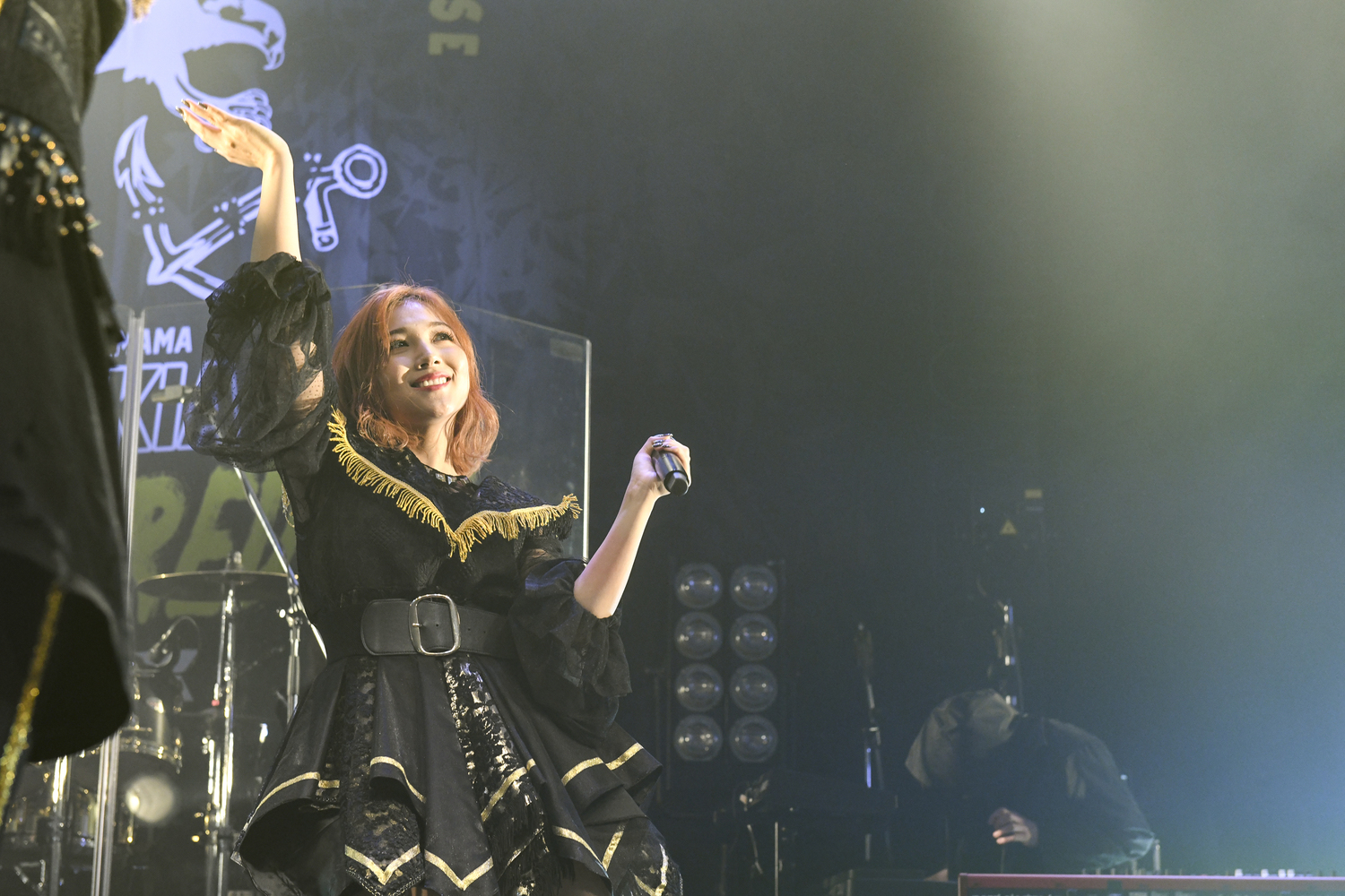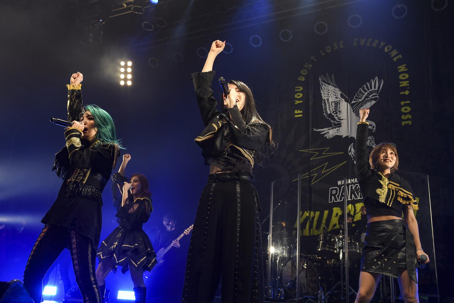 短いMCを挟み、川﨑怜奈のキュートな攻撃性、海羽凜の妖しい色気、MIRIの切れ味鋭いラップ、そして星熊南巫のたくましくエモーショナルな歌声とそれぞれの魅力が絶妙に重なり、我儘ラキアの強烈な個性を放った「RAIN」、高ぶる感情をMIRIのラップがさらにブチ上げた「Reflection」に続き、「お待たせしました、新曲持ってきました!」と星熊の曲紹介で始まったのは、12月リリースのミニアルバム『WAGAMAMARAKIA』収録の新曲「SURVIVE」。初披露ながら、突き上げるビートと躍動感ある曲調で聴く者の心をガッチリ掴み、ライブは最高潮の盛り上がりを生みだす。と、ここでステージに異変が起きる。楽曲終盤、静かにステージを去っていったMIRI。ライブはそのまま続行し、会場中で振り付けを合わせた「Leaving」、たっぷり気持ちを込めた歌声を届けた「Melody」を3人で歌い上げて大きな拍手が起きるも、観る者に不安がよぎる。