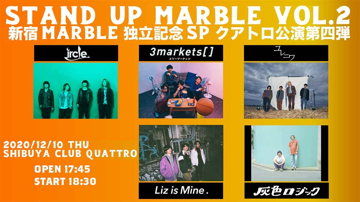 12月10日(火)に渋谷クラブクアトロで行われる、『STAND UP MARBLE vol.2 ~新宿Marble独立記念SPクアトロ公演第四弾~』に出演するアーティストが発表となった。