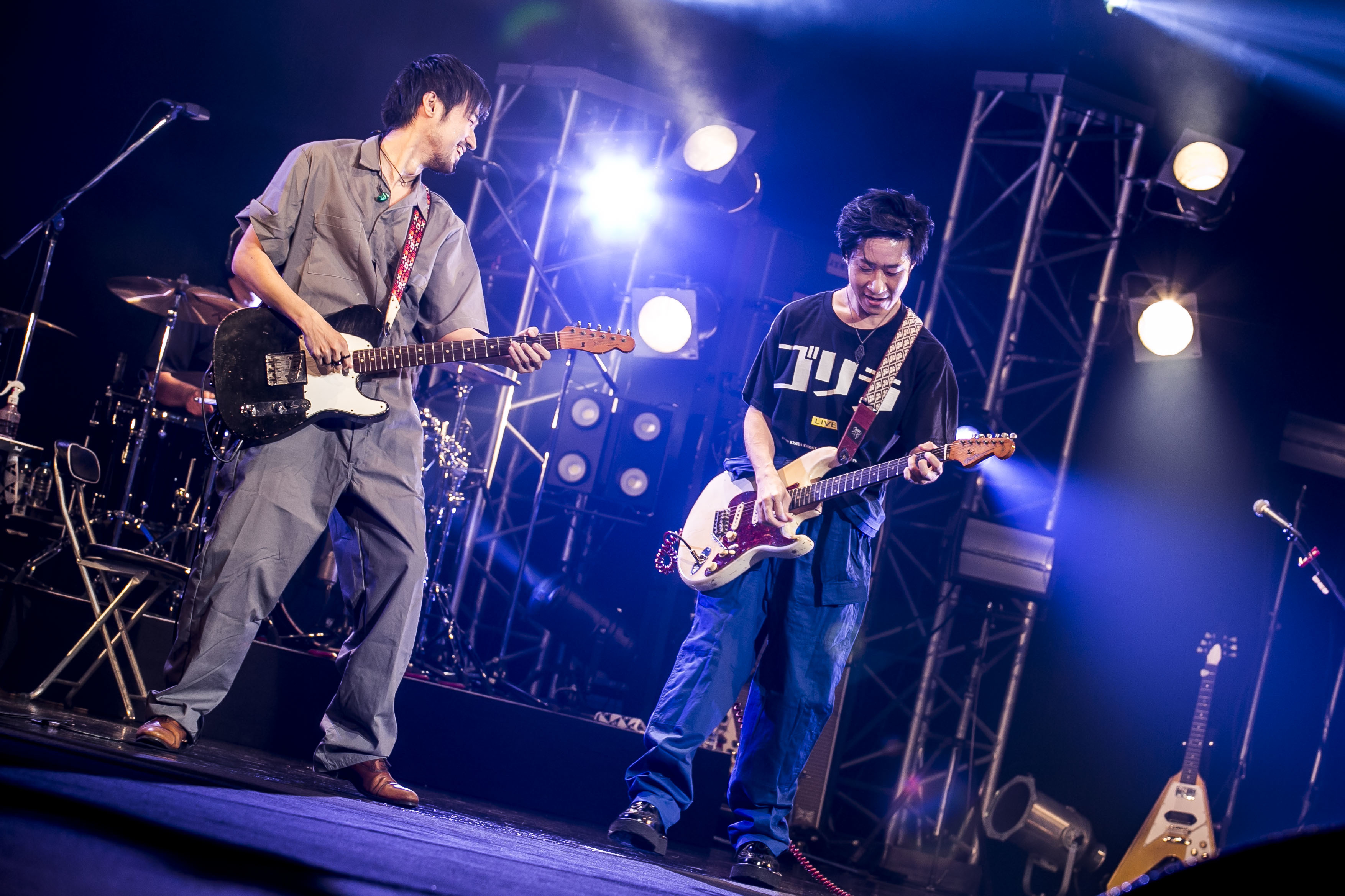 ライブを終え、舞台袖に去っていくメンバー達。暗くなる会場。それでも、限られた人数しかいないこの会場に手拍子が鳴り止むことはない。会場のモニターに映し出されたYouTubeのコメント欄は「アンコール」の嵐。舞台上に戻ってくるメンバー達は舞台最前まで歩みを進め、客席に向けてに深々と頭を下げる。全員が色違いのツナギを、各々のスタイルで身に纏って各々配置につく。アンコールの始まりだ。