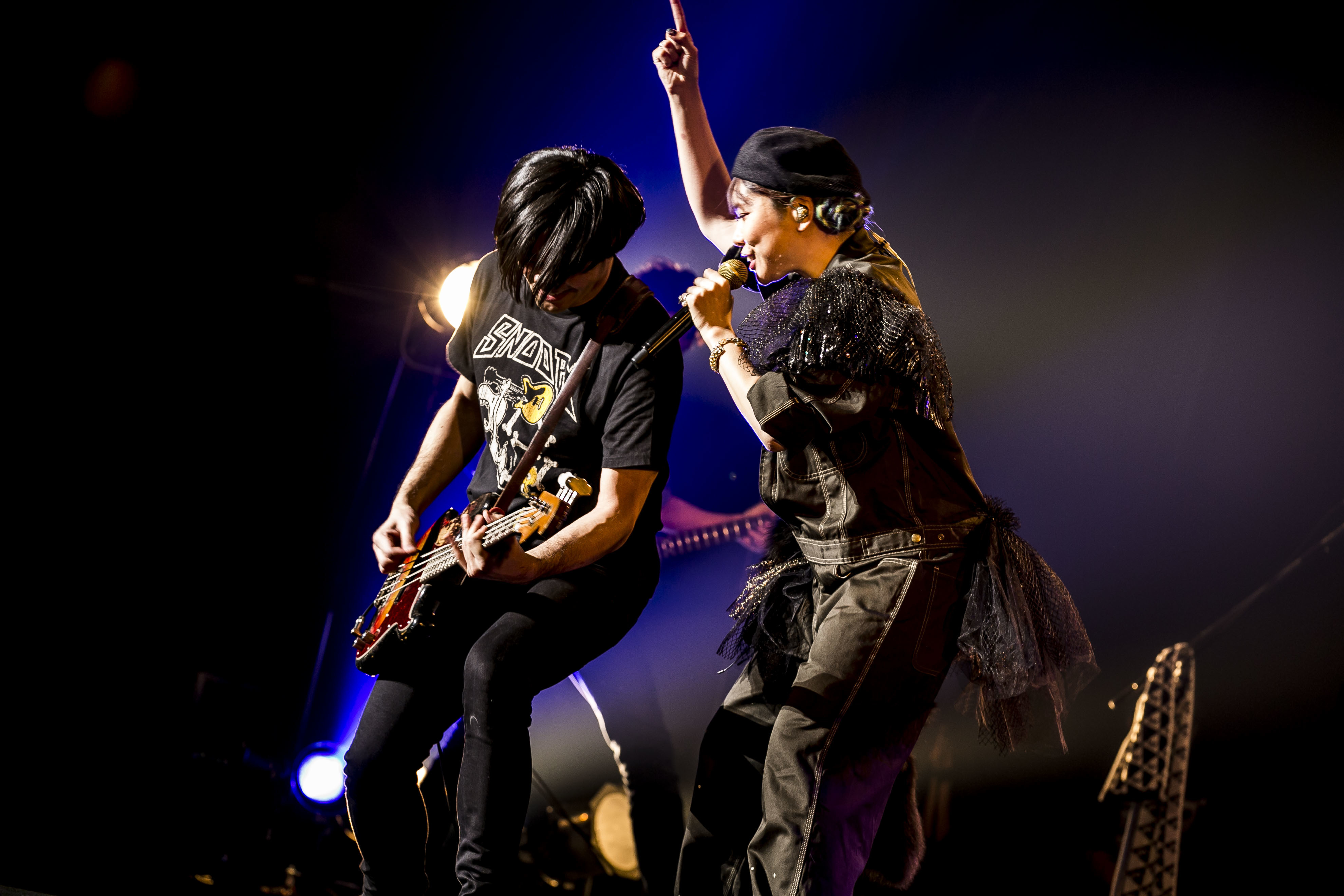 一曲目に披露されたのは「Hack on the world」。激しいサウンドから始まる非常にエネルギッシュな開幕。曲中でボーカルであるichigoが一言。