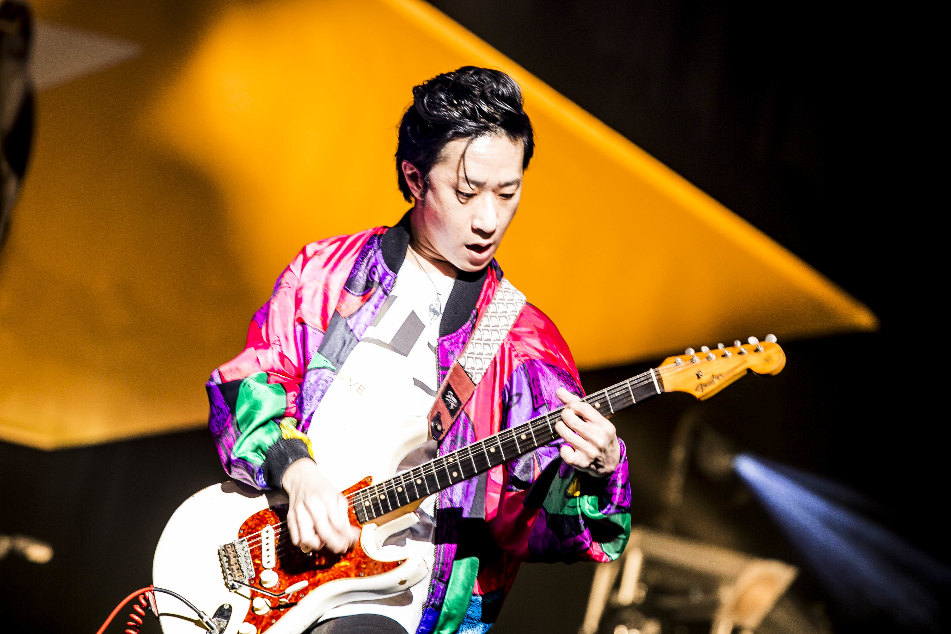 今回の配信ライブに込めた彼等の想いが凝縮された決意表明のような言葉、そこから短い挨拶を経て立て続けに披露されたのが「セブンスワールド」。hayapiの派手なギター演奏や、舞台の最前まで乗り出しパフォーマンスをする姿も見られ、二曲目にしてエンジンは全開だ。