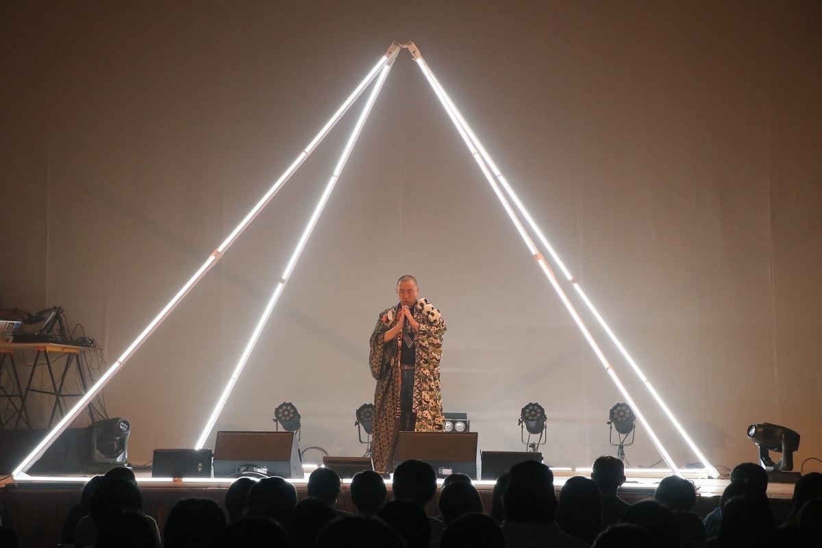 ここからはいよいよパフォーマンスの時間。RGは、アルバムから「アクアマリンのままでいて」、シングルから「いただきます」を熱唱。「アクアマリン~」は、カルロス・トシキ&オメガトライブのカバ-曲だが、感想を求められたRGは「このセット(ピラミッド)のおかげか、カルロスが降りてきました!」と笑わせた。