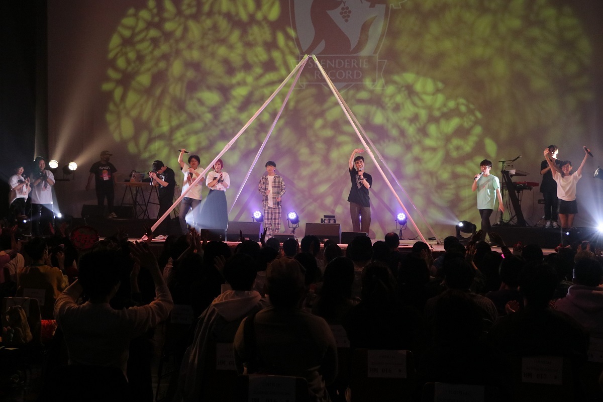 11月7日(土)にサンリオピューロランドエンターテイメントホールにて開催された、藤井隆主宰の音楽レーベル「SLENDERIE RECORD」のコンピレーションアルバム『SLENDERIE ideal』発売記念イベント『SLENDERIE RAYO live ideal』が開催された。1日2公演行われたイベントの、第1部のオフィシャルレポートが到着した。