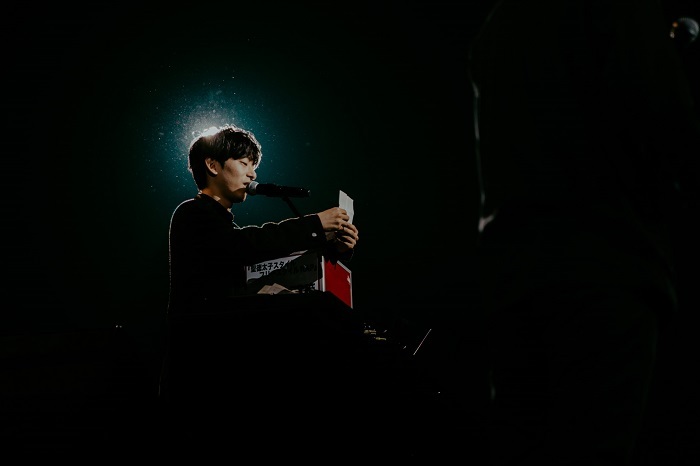冒頭、客席エリアの中央に設けられたステージから突然二人が現れ、「スポットライト」で初となる武道館公演はスタートする。さらに、8月にリリースされたアルバム『かつて天才だった俺たちへ』より、菅田将暉とのコラボレートで話題となった「サントラ」、アルバム収録曲「ヘルレイザー」、「耳無し芳一Style」などを惜しみなく披露。
