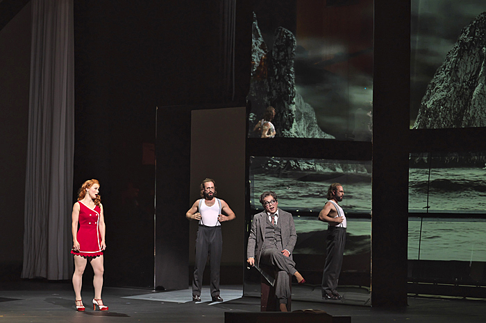 シュタイアーの演出は、出演者の間に距離を保たねばならないという制約を感じさせず、人物描写において見事であった。クーパーとベラの寝室のシーンもそうだが、ベラの死もその姿が目に焼き付いていつまでも残ってしまう。バルバラ・エーネスの硬質な美術と、ウルズラ・クドルナの色を効果的に使った衣裳、オラフ・フレーゼの照明も舞台と映像のバランスが秀逸だった。雄弁な映像はクリストファー・コンデクの作。