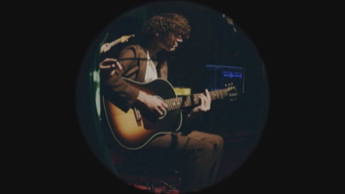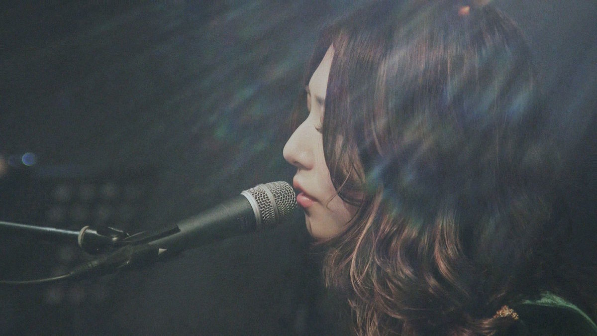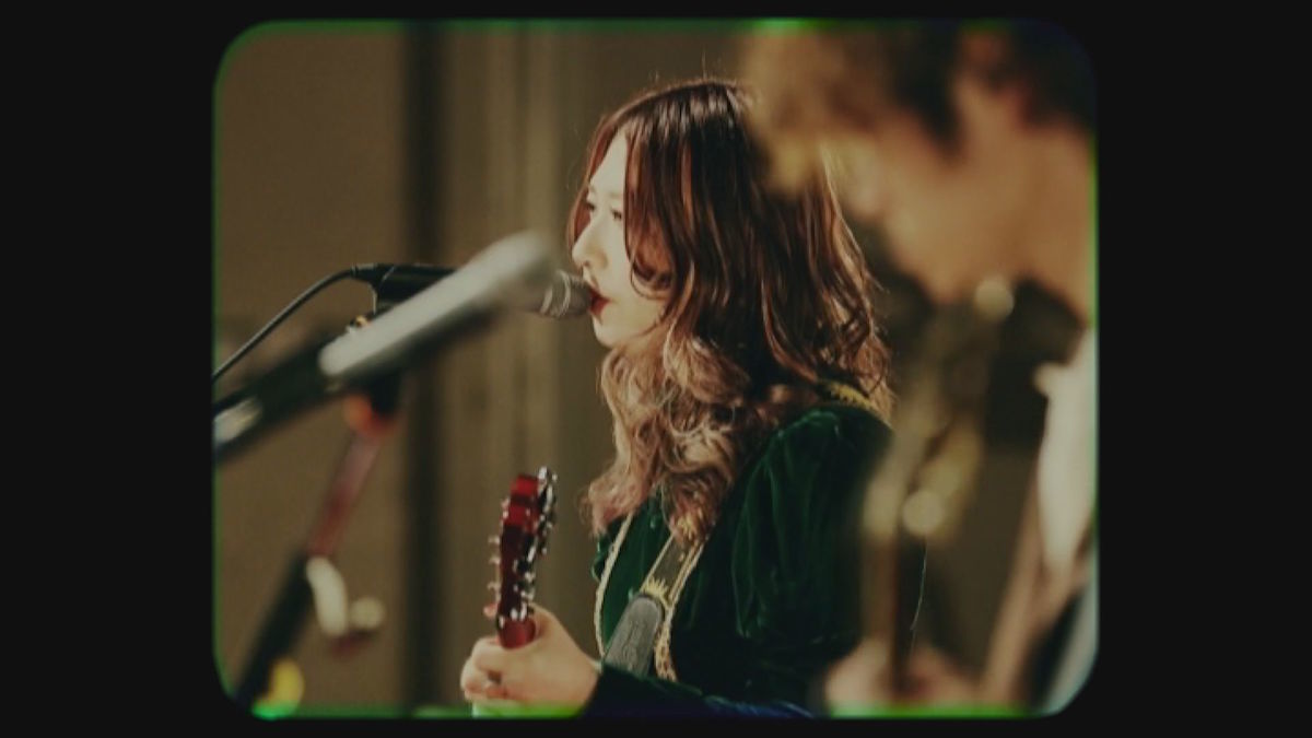ステージも終盤に差し掛かり、ここで“ゴメストリングス”(中込が集めたストリングスメンバーだからそう呼んでいるらしい)の須原杏、銘苅麻野、秀岡悠汰、吉良都が登場。変わりゆく時代のなかでも二人が常に示し続けてきた、“自分らしくいることの大切さ”を象徴する「大人になったら」に美しい弦の調べが重なり、その強さや温もりや優しさといった感情のハーモニーはさらに豊かに。続くフォーキーで軽快な「By Myself Again」が描くのどかな田園風景にもまた一つ新たな緑が加わったよう。そしてブリティッシュフォークを思わせる甘美でどこか妖しげなストリングスと松尾の絶品メロディーに、亀本のギターがそっと寄り添う詩的な「若葉の時」では、松尾が椅子に座り本を片手にリーディングスタイルで歌う。暗い森にふと指した光のような照明とその様を映すカメラアングルは、配信ならではの世界観と情緒に溢れ、時代の喧騒に苛まれた心が少し軽くなった気がした。