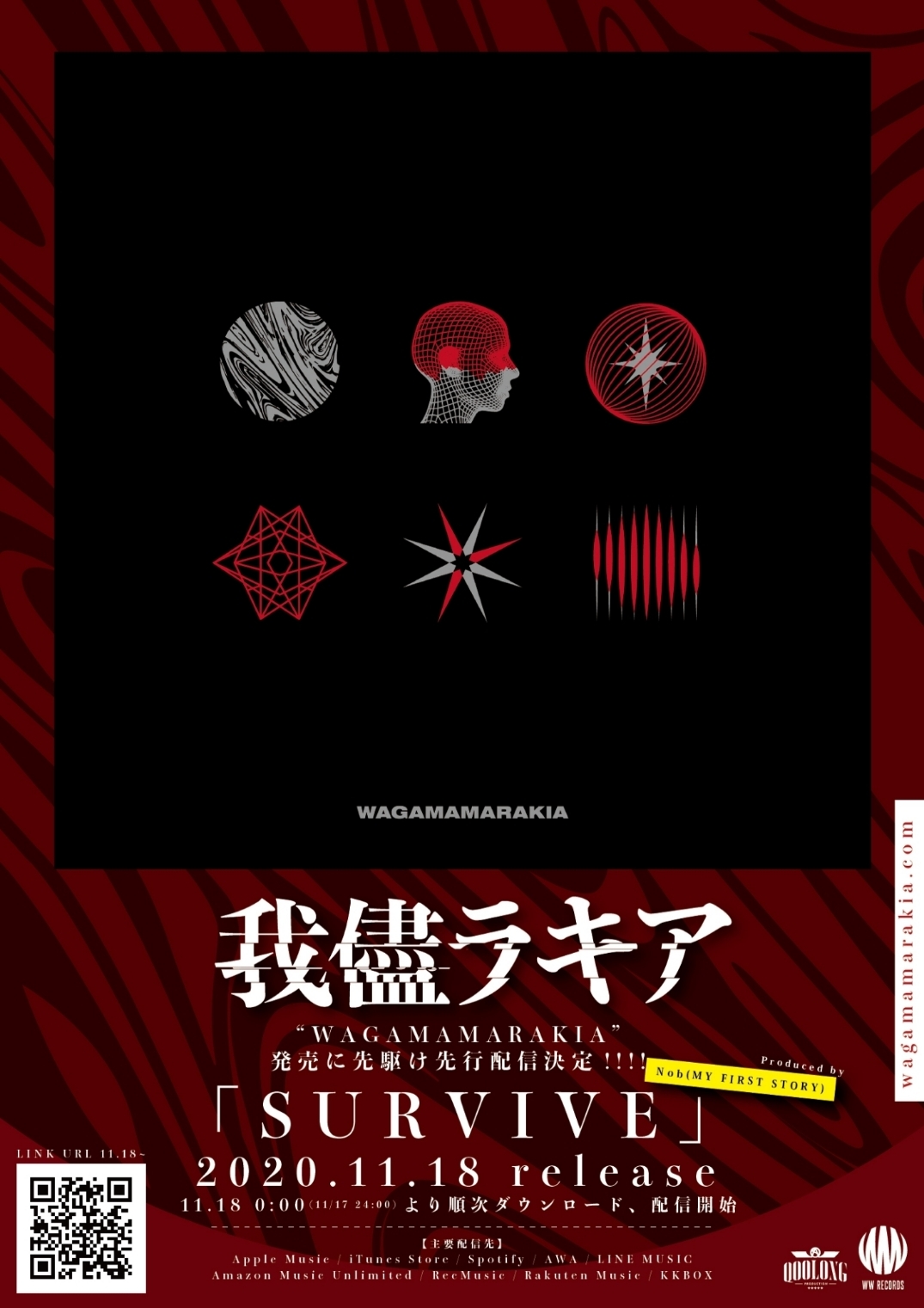 我儘ラキアが、12月23日に発売となるニュー・ミニアルバム『WAGAMAMARAKIA』より、収録曲「SURVIVE」を11月18日(水)より先行配信されることを発表した。この楽曲はNob(MY FIRST STORY)プロデュース楽曲で、先日行われた『Killboredom TOUR 2020』のファイナルTSUTAYA O-EAST公演で披露され話題をよんでいる。