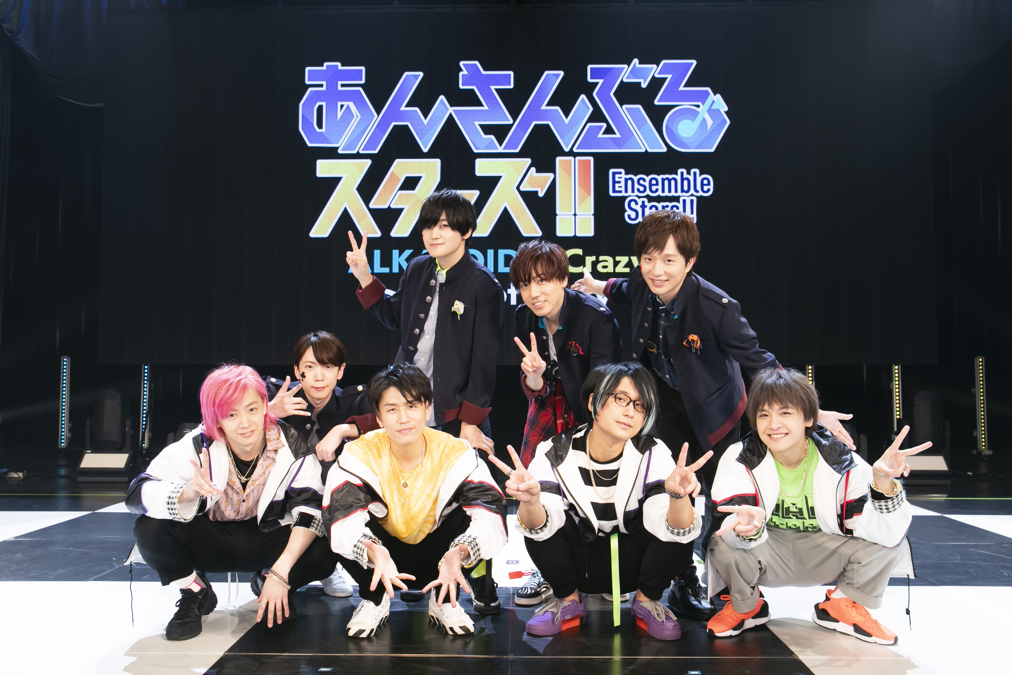 出演は、「ALKALOID」の梶原岳人(天城一彩役)、天﨑滉平(白鳥藍良役)、重松千晴(礼瀬マヨイ役)、中澤まさとも(風早巽役)。「Crazy:B」の阿座上洋平(天城燐音役)、笠間淳(HiMERU役)、海渡翼(桜河こはく役)、山口智広(椎名ニキ役)の計8名。それぞれの曲を披露したライブパートや、これまでの活動を振り返るトークで盛り上がった本イベントの夜公演のレポートを写真と共にお届けする。
