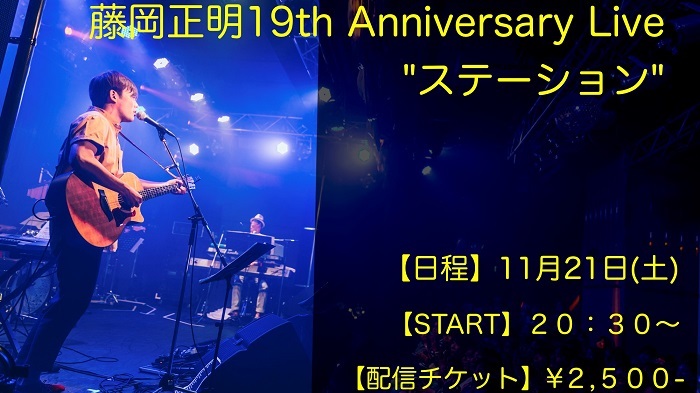 数多くの舞台で活躍する藤岡正明が、ストリーミングサービス『MUSER』にて、19th Anniversary Live『ステーション』を2020年11月21日(土)20時30分より配信することが決定した。