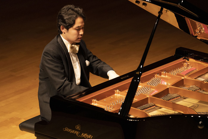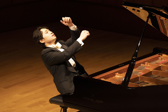 コーダ (終結の一曲) のフィナーレの華麗な弾き納め。その熱を帯びた雰囲気に包まれたまま、最後の一曲、 ショパンの「スケルツォ 第2番」へ。前曲のチャイコフスキーとは、また一味違う、洒脱さとエレガントさが香り立つ。しかし、それは決して華奢なスタイルではなく、真っ向から立ち向かう力強さを兼ね備えているところが小気味よい。特に中間部の速いアルペッジョの連続では、軽やかな音の煌めきが一気に高揚感へと誘う。