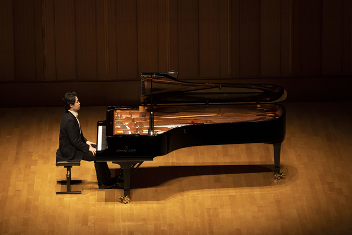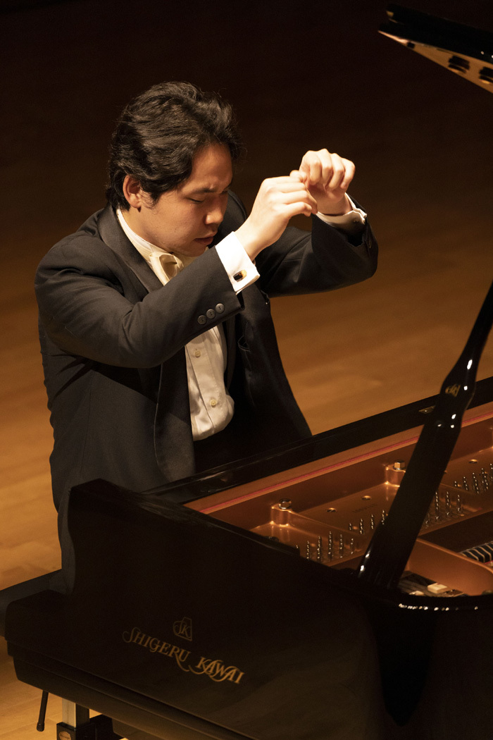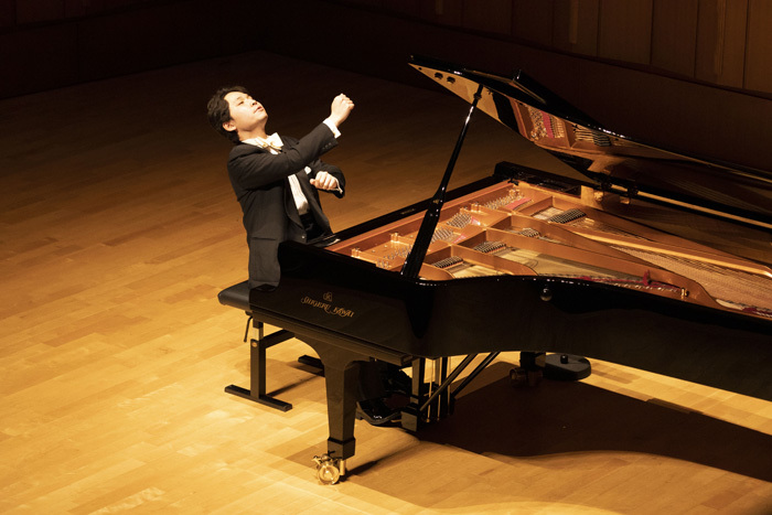 そして、完結のドラマが生まれでるフィナーレ (三楽章)。前半、すべてを見越しているかのような落ち着きに満ちていた。しかし、次第に頂点に向かいゆくエネルギーは、言葉というものの存在を超え、さらなる新たな境地を目指し、昇華されるベートーヴェンの秘めたる志を暗示するかのように、野心と希望に満ちたものだった。最後は腕を大きく振り上げて、「弾き切った!」 と言わんばかりのポーズで締めくくる。