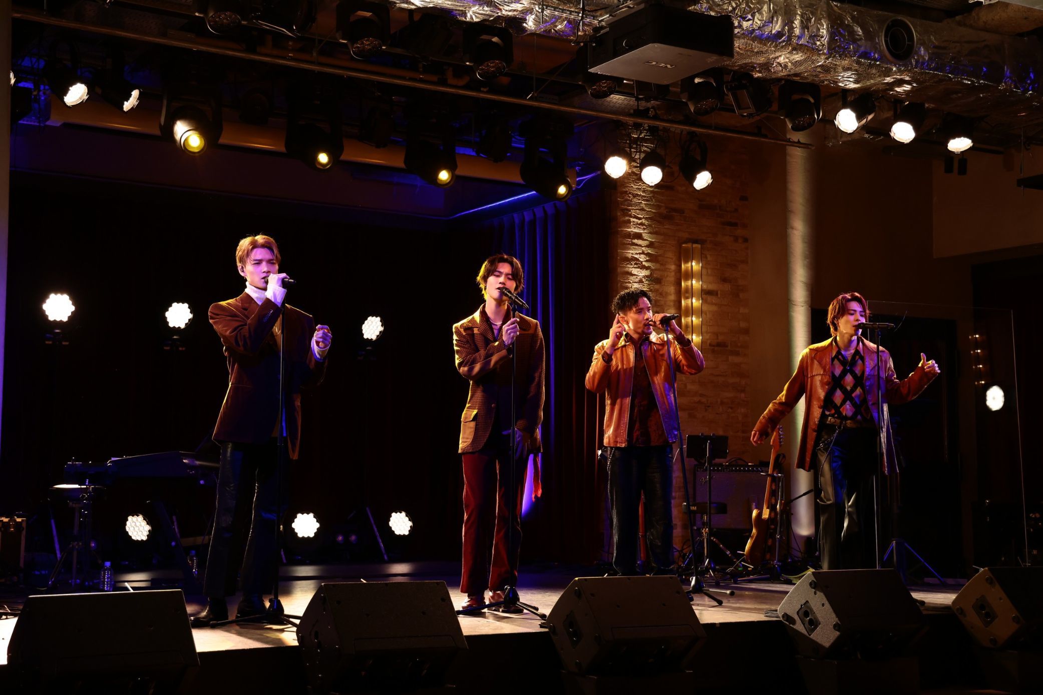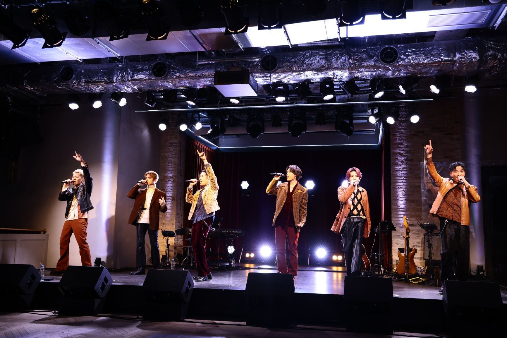 再び6人全員でステージに戻り、おもしろキャラのKEISEIを中心とした和やかなMCの後、それぞれが椅子に腰かけ、落ち着いた雰囲気の中でライブを再開。GENERATIONS from EXILE TRIBEによるカバーでも知られる名曲「SORA~この声が届くまで~」、YouTubeで公開され話題となったあいみょんのカバー「マリーゴールド」、そしてファンクラブ「DEEP LINK」内でファン投票1位を獲得した「白いマフラー」と、それぞれシンプルなアコースティックの伴奏の下で切なくもエモーショナルな美声を披露した。