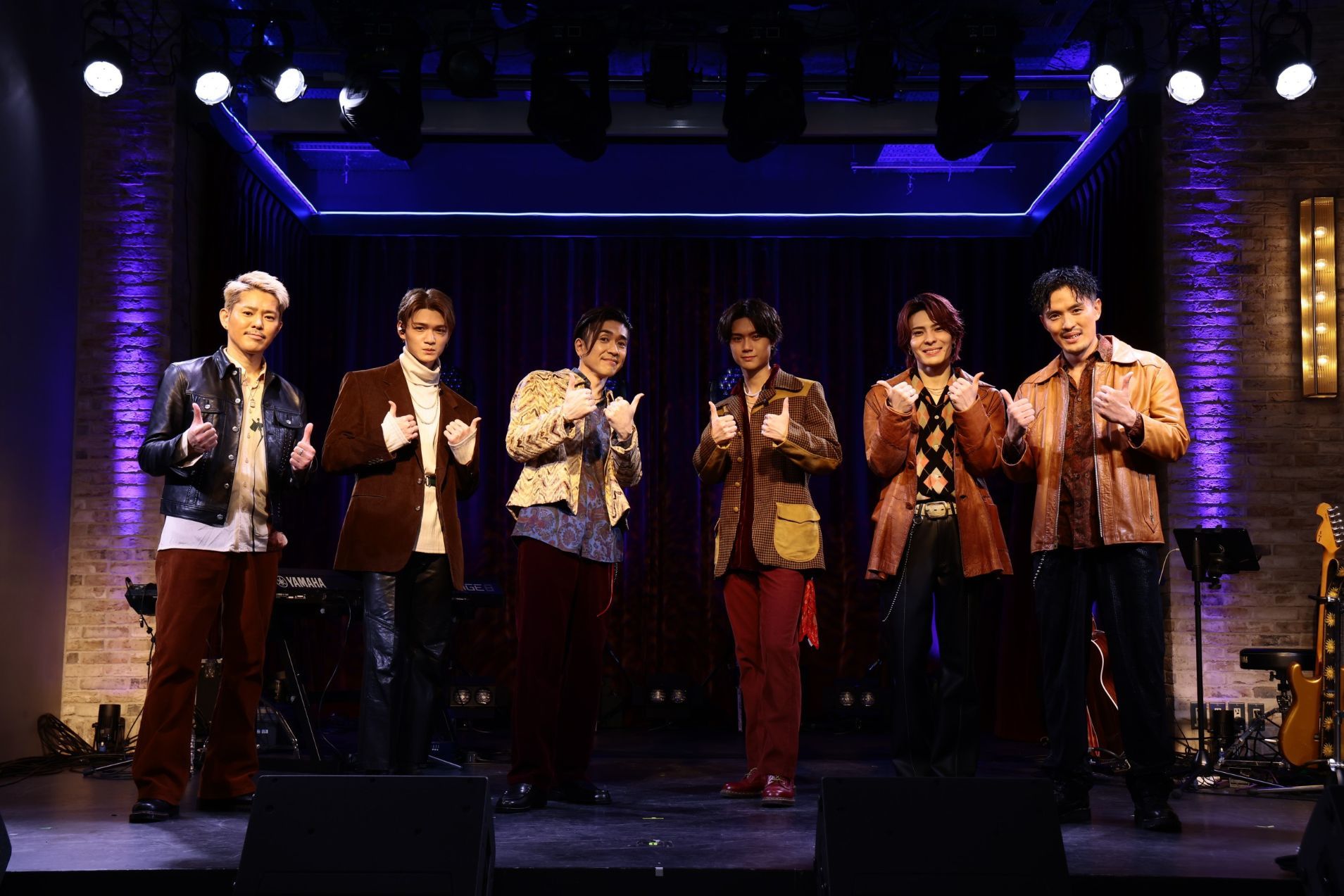 その後、ライブは後半戦に突入。「Baby」ではメンバーそれぞれが肩を組んでふざけ合ったりカメラに向かって指ハートをしたりと、心温まるパフォーマンスとコール&レスポンスで、画面の向こうのファンに笑顔を届けた。そこからノンストップで、タオル回しのある熱いナンバー「LINKS!!」で再び盛り上げた後、大人気ドラマ『30歳まで童貞だと魔法使いになれるらしい』EDテーマである新曲「Good Love Your Love」を満を持して初披露。思わず横に揺れたくなるサウンドと6人のグルービーな歌声でファンを沸かせた。