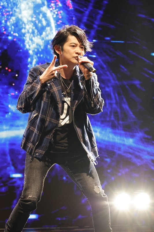 そして最後はお待ちかねのライブコーナー。先ほどのゲームコーナーとは打って変わり、1曲めの『WE GO! -On Your Mark-』から最高にクールな表情を見せ、モードは完全にアーティスト下野紘へ。じつはこのとき、激しいダンスで身をかがめた際、ポケットからマイクの中継機が落ちるハプニングが起きていた。しかし本人は表情ひとつ崩さずに最後まで歌い切り、アーティストとしての経験値の高さを見せつけた。