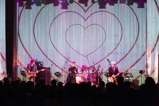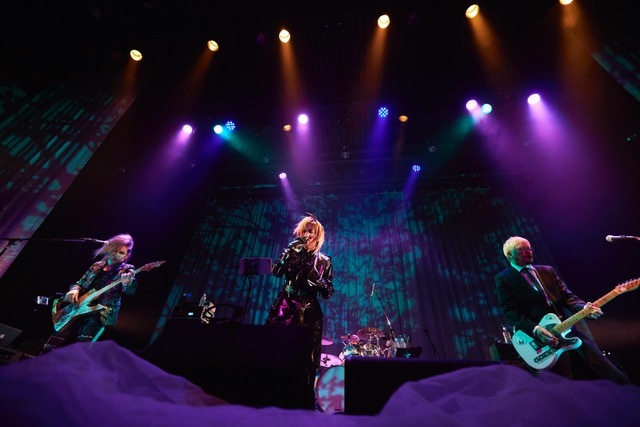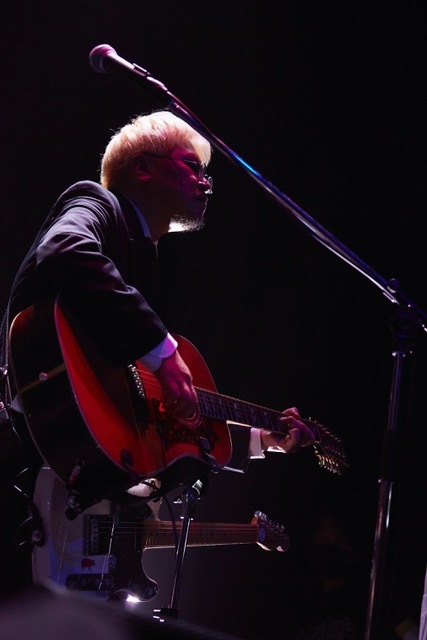 そして、「さかしま」では桜井が12弦ギターでアルペジオを奏でる。これは音源では為し得なかったライブバージョン。さらに名古屋、大阪では1コーラスが終わるまで村井研次郎(B)はステージを捌けて歌とギターだけで聴かせていたが、フルで温かなベースを響かせていたのはこの東京公演だけだ。さらに、続けてアンビエントな「月白」をバンドバージョンで聴かせたのは東京公演の第1部だけである。この日、石井の喉は決して好調だったわけではなかったが、それゆえの少しハスキーがかったヴォーカルが儚さを増長させていた。終盤は「青春狂騒曲」、「ブルーフィルム」とエモーショナルなナンバーを2曲。「ブルーフィルム」では、バックのスクリーンに20年前に撮影したMVが流れるという演出も。そしてラストは “セックス!セックス!”と連呼するカバー曲「Sex On The Beach」を聴きながら泣き笑い。音楽が生き続けている限り、死んでいった青春は何度でも蘇るのである。そんな言葉が胸に宿るような、緩急のついた充実のステージであった。ぜひ配信ライブで体感していただきたい。