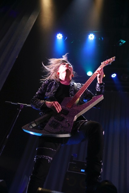 KANDA SQUARE HALL公演第1部の幕開け。「ラストいくぞー!」。ステージに登場するなり檄を飛ばす桜井青(G)。マスク姿の観客は拳を振り上げて、それに応える。新型コロナウイルス感染防止対策のガイドラインに基づき、観客も歓声を上げることができない状況ではあるが、何ぶんタイトルからして『クライマックス♥エロチカ2020』である。この状況もなんらかのプレーだと思えば、そこはもうエロスでありカオスなのである。グラマラスな「エロトピア」からタイトなバンドサウンドに生まれ変わった「ミルクセヰキ」、「淫美まるでカオスな」、「アイアイ」とアッパーチューンが続く序盤から、以降も『ブルーフィルム -Revival-』のナンバーと過去曲を織り交ぜ、混沌とした世界を展開する。特筆すべきは桜井作詞作曲の「デリヘルボーイズ!デリヘルガールズ!」と、石井秀仁(vo)作詞作曲の「さかしま」の新曲2曲。80’sポップチューンの「デリヘルボーイズ!デリヘルガールズ!」は、石井と桜井のツインヴォーカルでデリヘル業界の現実と悲哀をポップに描いたナンバーで、この憂いを帯びたキラメキは今後の定番曲になっていきそうな予感がある。