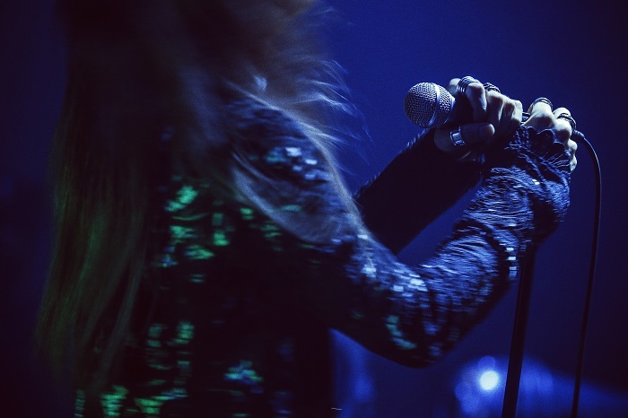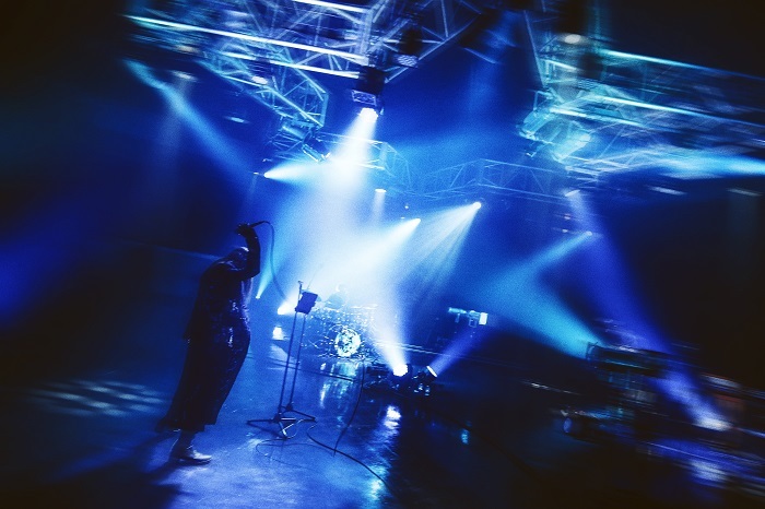 演奏曲は初期曲から最新作『GARDEN』収録曲まで比較的まんべんなく演奏されたが、演奏そのものもまた、これまで以上にハードでアグレッシヴな面を強調していた。それがよくわかったのが、中盤から終盤のクライマックスに至る流れの中でプレイされた、まだタイトルもつけられていない新曲2曲だ。ギターの鼓膜に突き刺さるようなハードなギター・リフとミニマルなビートが強烈な印象を与える1曲目、エモーショナルでドラマティックな2曲目と、吹っ切れたようなメリハリのある曲調、アッパーでノイジーな音でショウの流れを加速する。ステージと客席という場所の制約から解き放たれたショウは、照明や演出も含め自由奔放で、より的確にACID ANDROIDの世界観を描き出している。マイクにすがりつくように歌うyukihiroの横顔を激しく明滅する照明が妖しく照らしだし、3人が演奏するそこだけが別世界となっていた。「let's dance」で大きなミラーボールが天井から下がってきて、会場全体を照らし出す演出にはうなった。