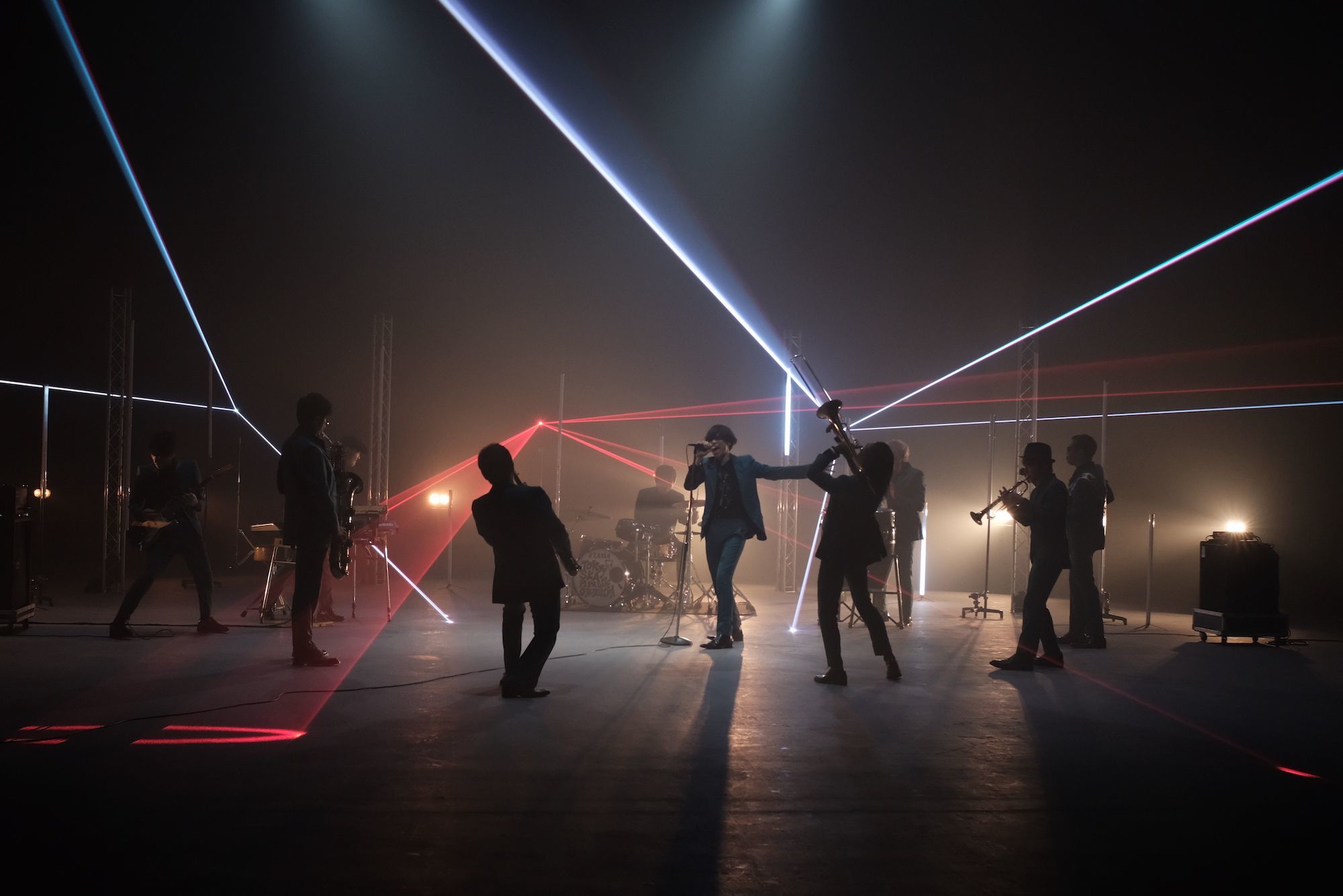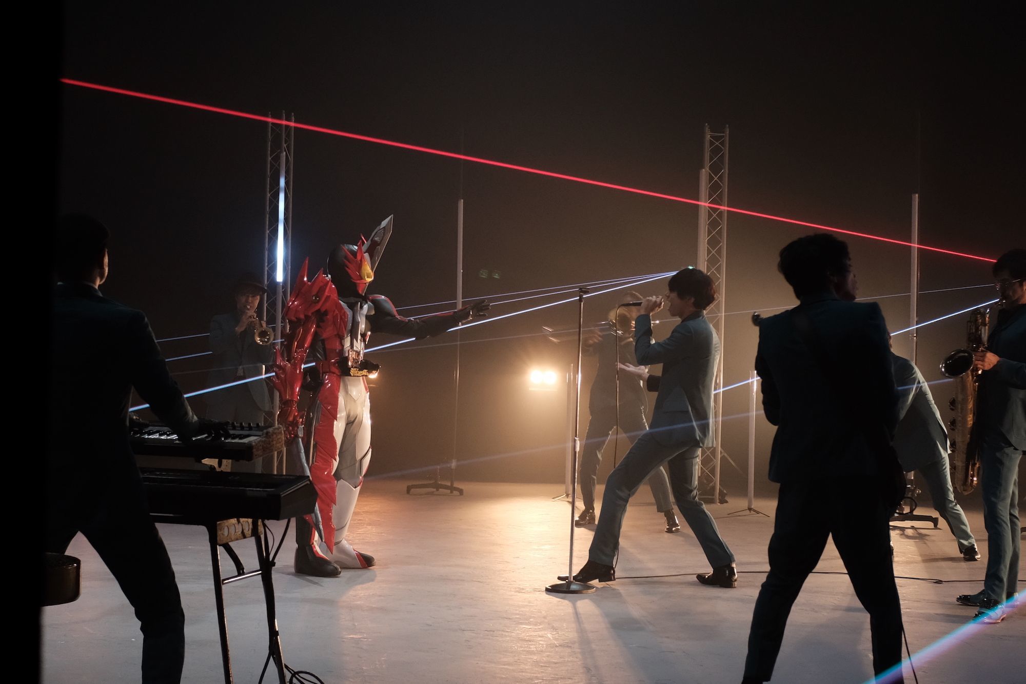 レーザーとLEDで彩られる映像には、円形のフォーメーションで熱く演奏するスカパラと、そのセンターで歌唱する川上洋平の姿が収められている。そして、グリーンのスーツを身に纏った10人がパフォーマンスする中、仮面ライダーセイバーも登場。華麗な剣さばきと凛とした佇まいを見せている。