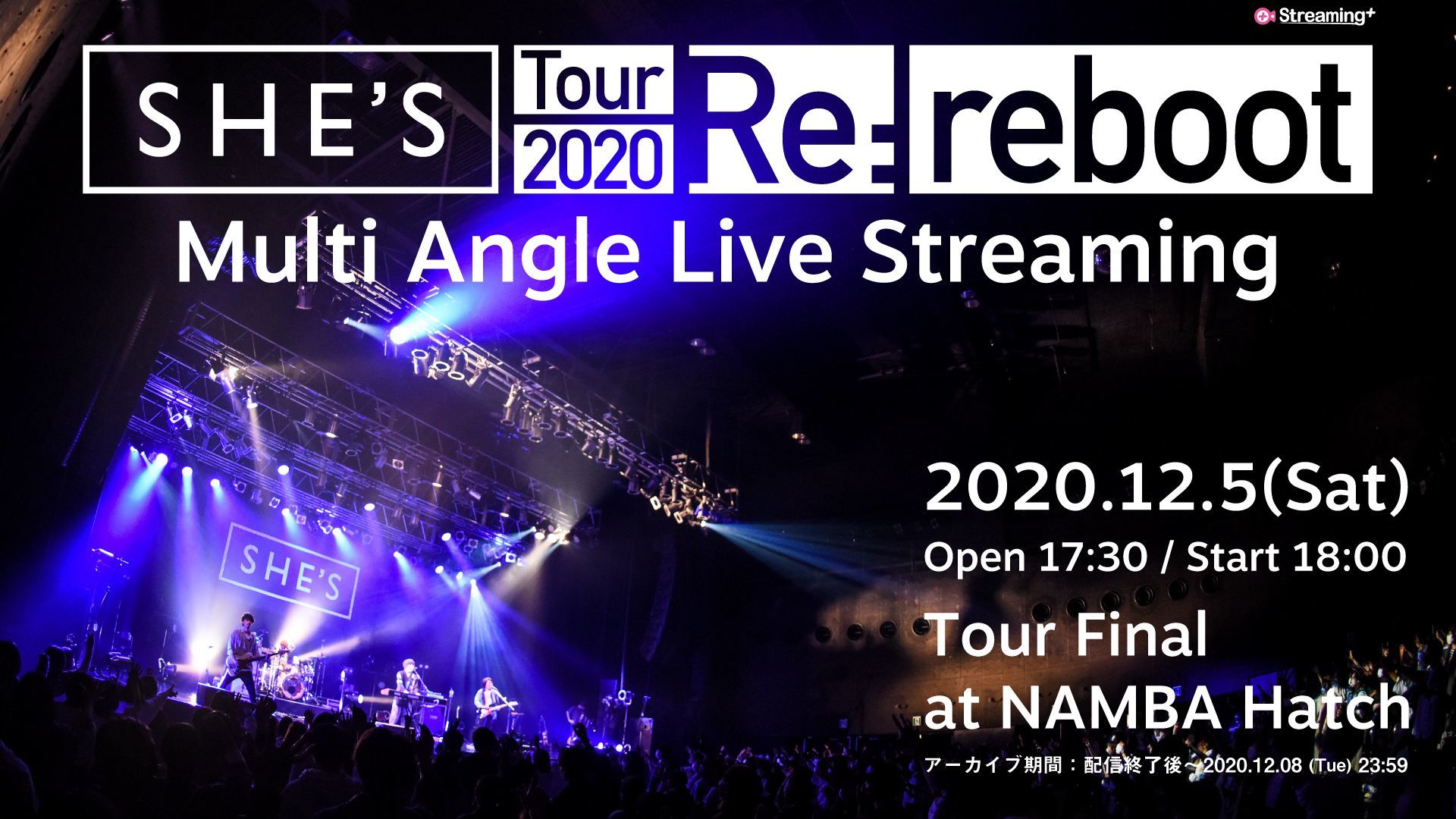 SHE’Sが現在開催中の全国ワンマンツアー『SHE’S Tour 2020 Re:reboot』から、12月5日(土)に大阪・なんばHatchで開催されるツアーファイナル公演の模様が生配信されることが決定した。