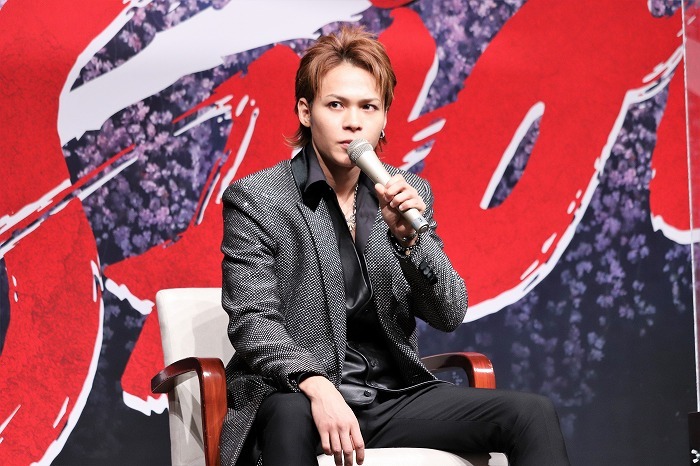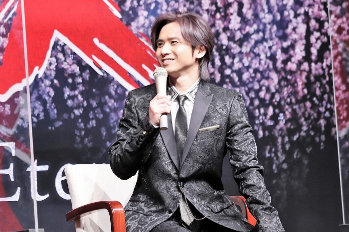 その後会場に登場した光一は真っ先に映画化の話を始めた。「本編の映像を映画館で上映していただき、同時期に帝劇でスピンオフが観られるという形にすればどちらから観ても観やすいものになるのではないか? その話を東宝さんにしたところ、劇場版『鬼滅の刃』が順調な中ですがこの話に乗ってくださった(笑)」と笑いを交えつつ趣旨説明。
