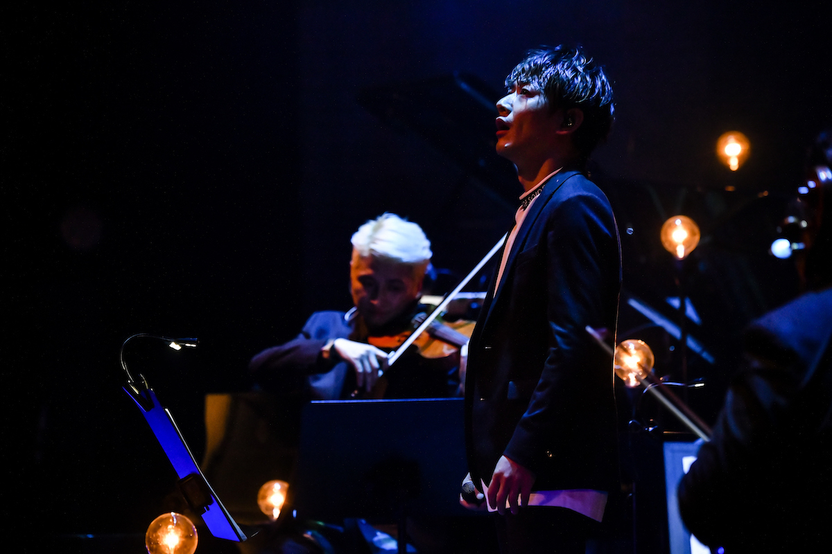 そして何と言っても惹きつけられたのが、村松のボーカルの強靭さだった。それは単にパワフルというだけでなく、ハスキーに掠れさせたりファルセットを用いたりと技や味も持ち合わせた歌唱なのだが、存在感と揺るぎなさが群を抜いている。本人曰く、ストリングスを背負って歌うことで「覚醒していくのを感じる」とのことだったが、なんといっても普段、下手すると誰もコードのわかりやすいフレーズを弾いていない瞬間もあったりするバンドの音に乗せ、主軸となる歌を歌っている男なのだから、その実力を遺憾なく発揮したと言えるだろう。