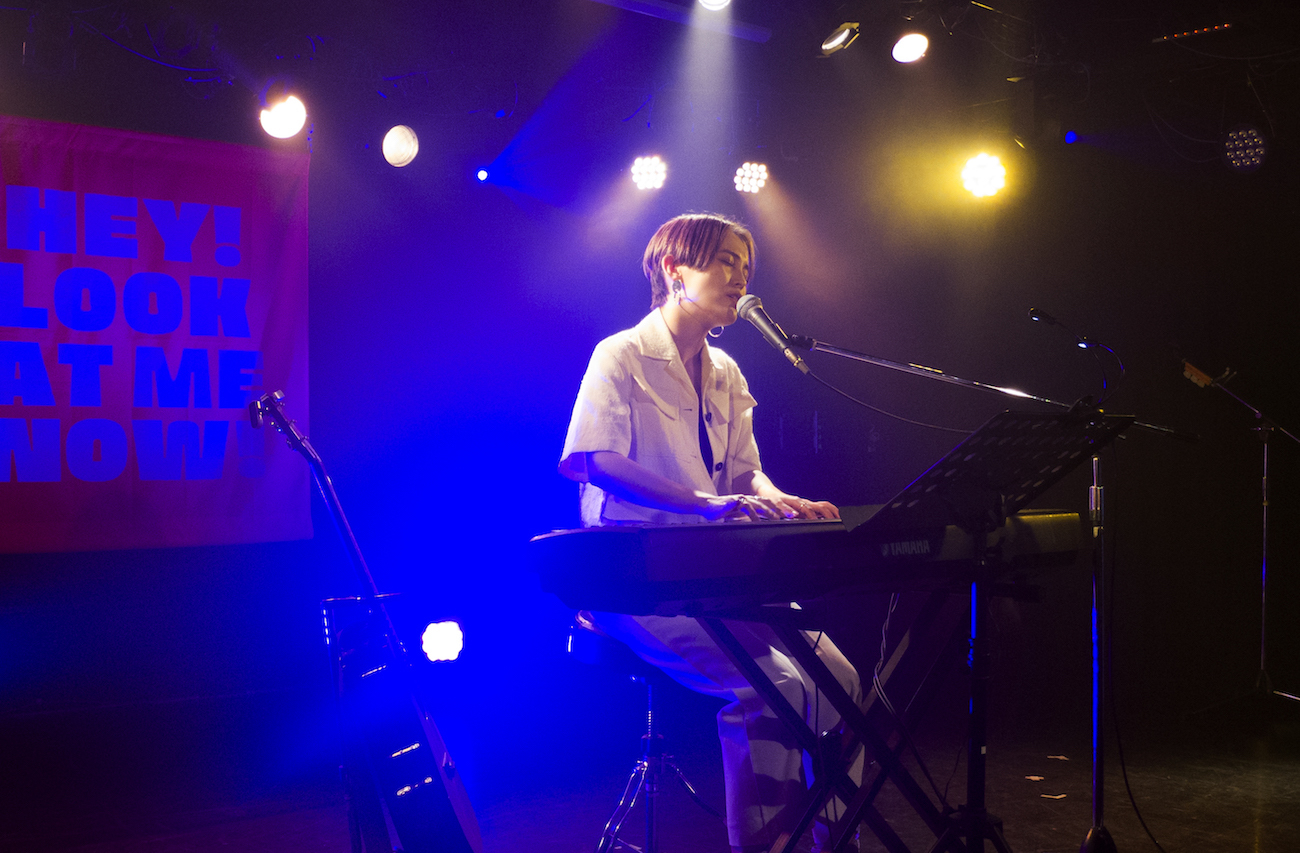 キーボードの前に座る井手綾香は、しっとりと伸びやかな声で「ステーション」を弾き語った。続いて「琥珀花火」を披露。力強さの中に繊細さを感じる歌声が、会場を包み込む。