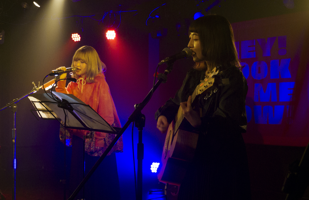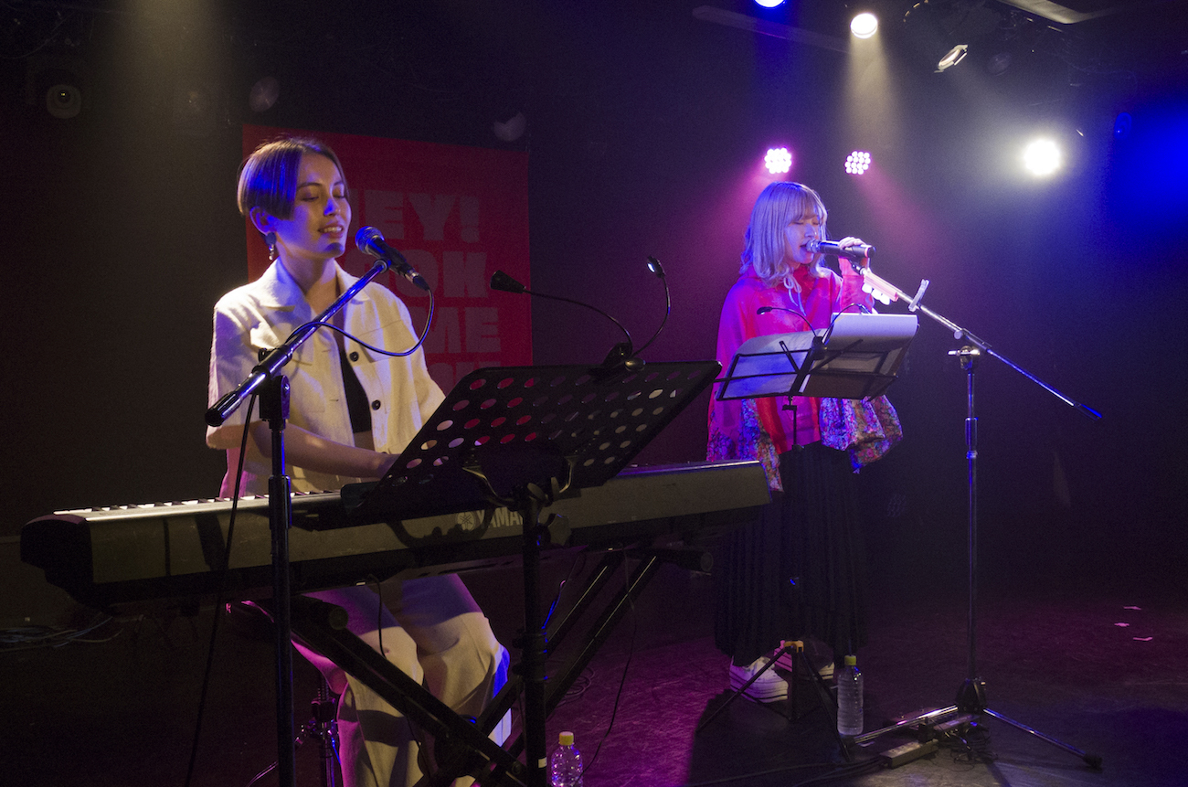 みきなつみが4曲を歌い終えるとステージには、果歩が登場しみきなつみとのセッションライブがスタートする。みきなつみがセッション曲として選んだのは、果歩の最新EP収録楽曲「朝が来るまで夢の中」。みきなつみが「たまにこの歌詞のような日があって、とても共感した」と語りかけると、「なんかドキドキしちゃうね」と果歩が答え二人で微笑みあいながらセッションへ。果歩が演奏するギターに、2人のハーモニーを交えながら楽曲を披露した。時折お互いの顔を見合わせ、終始楽しそうに歌う雰囲気に、会場の空気が柔らかくなるのを感じることができた。