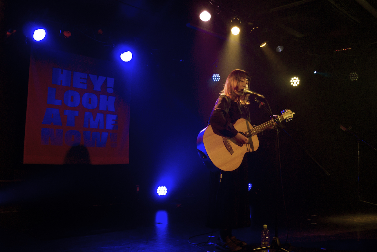 「ステージからチャットが見えるので、ちゃんと観てくれているんだなって感じられて嬉しいです。」と語り、「消えてなくなれ、夕暮れ」をギターで弾き語り、その後もキーボードで「弱虫トラベラー」、「飾らない愛」を披露した。どちらも自身の家族をテーマにした楽曲で、大きく包み込むような優しい歌声が視聴者を温かい気持ちにさせてくれた。