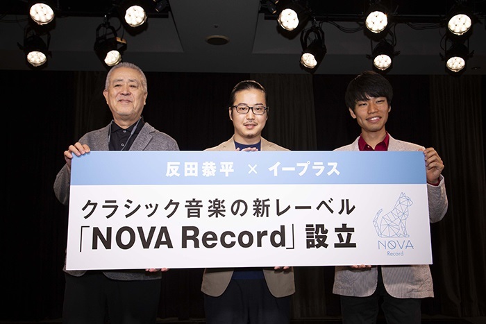NOVA Record設立会見の様子(左から、橋本行秀(イープラス)・反田恭平・務川慧悟 撮影/池上夢貢)