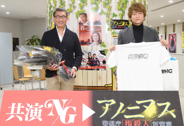 セレモニーは、12月7日(月)に最終回放送を控えた『共演NG』と、2021年1月に放送がスタートする『アノニマス』の撮影スタート直前を記念したもの。テレビ東京のタレントロビーで行われたイベントは、かつて舞台でも共演し、中井曰く「よく知り合った仲」というふたりによるものだけあり、和気藹々とした雰囲気の中で進行した。