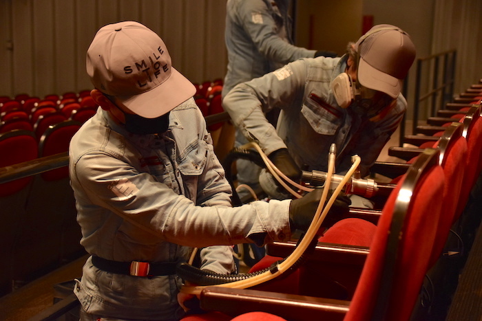 新型コロナウイルスをはじめとする感染症予防のため、東京の日比谷シアタークリエで進められている除菌作業の様子が2020年12月7日(月)、報道陣に公開された。