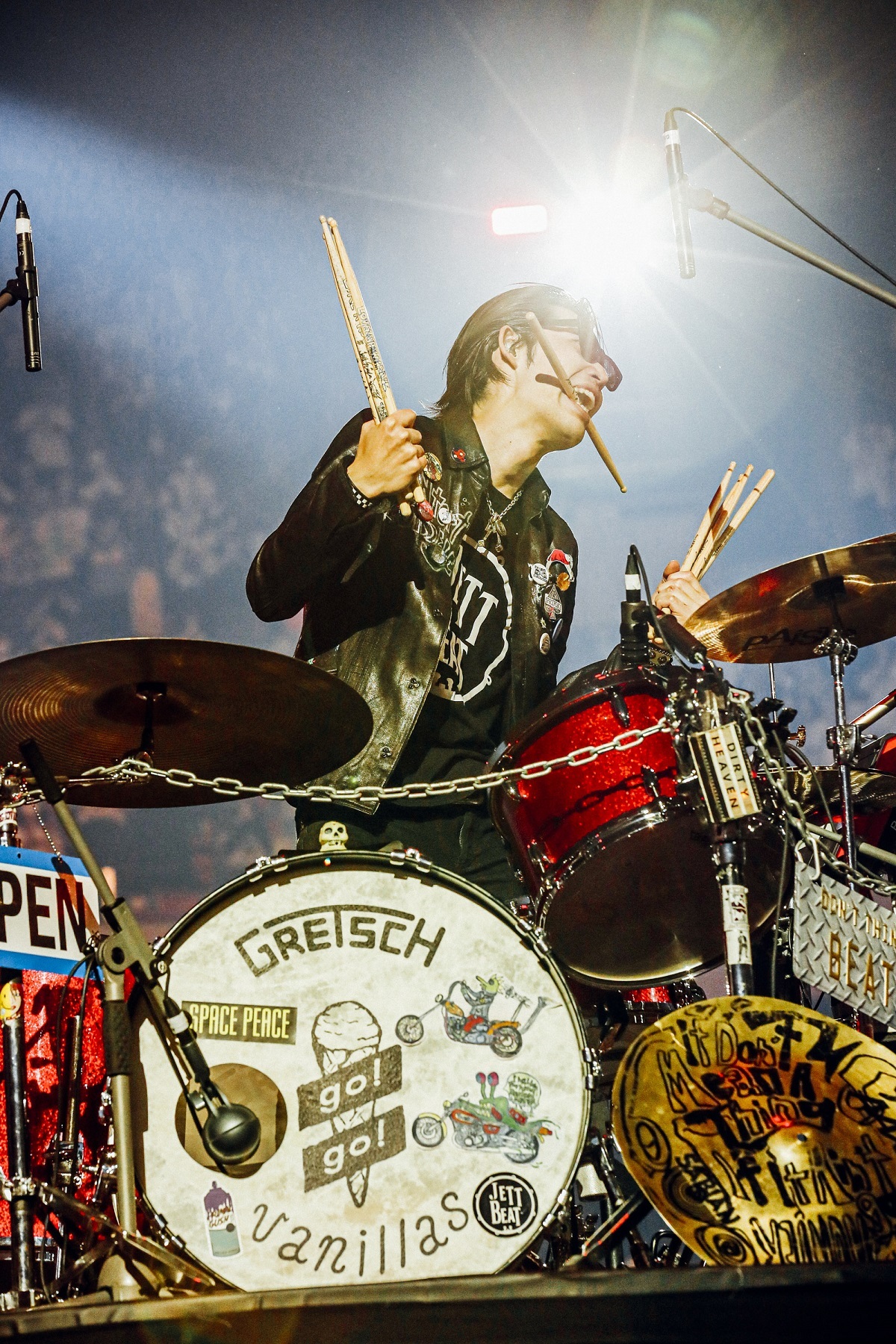 カラフルな照明に彩られた「マジック」では、リズムに合わせて飛び跳ねる観客によって客席が沸騰。4人が順にボーカルをとるライブ定番曲「デッドマンズチェイス」が早くも演奏されたのには意外性があったが、「デッド・マンズ・チェイス! パァン!」と、絶妙なタイミングで入った爆発音の特効に場内がさらに沸いた。締めの音を鳴らし終えたあとも、その辺の床を手当たり次第に叩いているセイヤは、興奮が収まりきらない様子。
