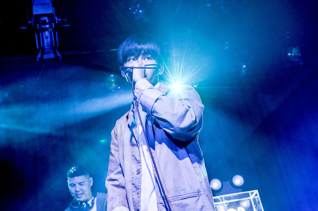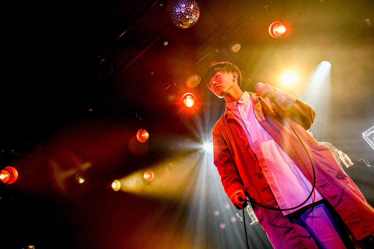 そして、いよいよ今回の主役であるクボタカイが、白いシャツにベージュのコートという装いでステージに登場。1曲目は「ベッドタイムキャンディー2号」。イントロが流れた瞬間、客席から静かな歓声が漏れる。ゆったりと客席を揺らし、「声が出せない分、踊ろう」という言葉と共に2曲目に新曲「MIDNIGHT DANCING」を披露。ダンサブルな新曲がフロアを煽っていく。3曲目は「真冬のショウウィンドウ」。この曲では歌詞を間違えてしまうハプニングもあったが、クールさと人間味溢れる可愛さが同居するステージにより引き込まれていく。
