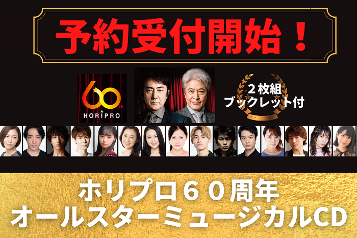 ホリプロ創業60周年を記念したCDの発売が決定し、予約受付が開始された。参加キャストは鹿賀丈史、市村正親ら計17名を予定しており、これまで上演されたホリプロミュージカルの名曲をスタジオ収録した決定盤となる。