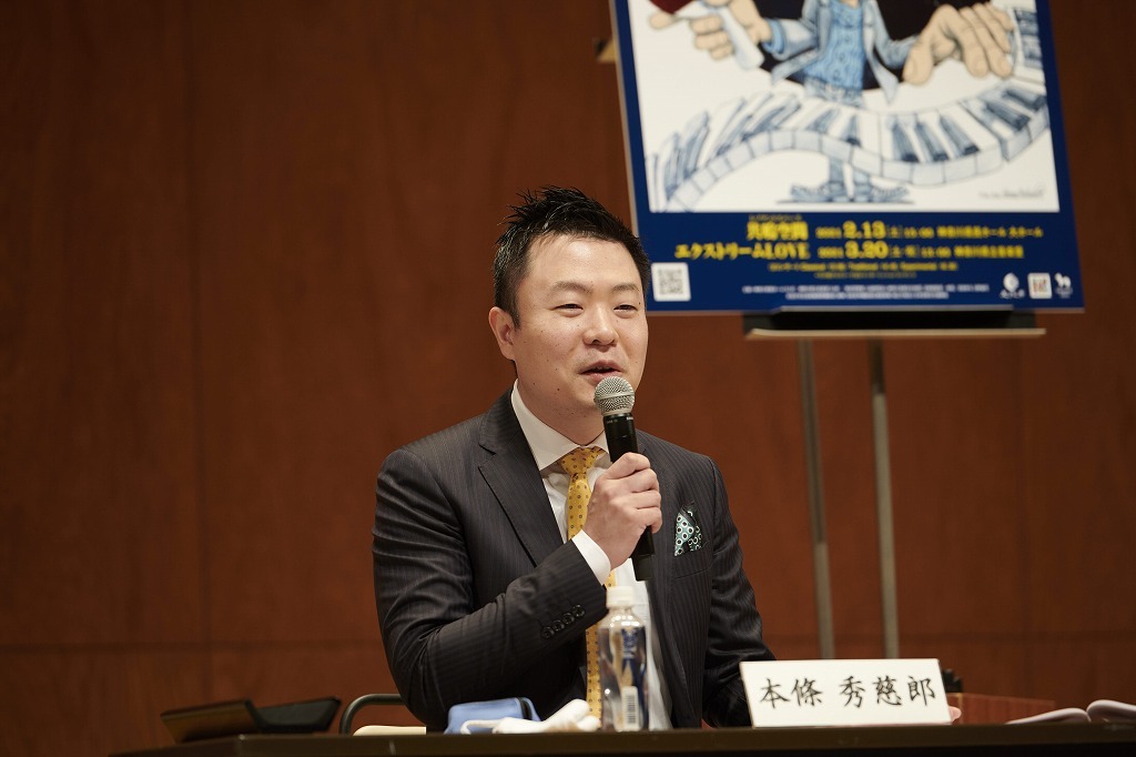続いて、マラソン演奏会の第二部に登場する三味線の本条秀慈郎。