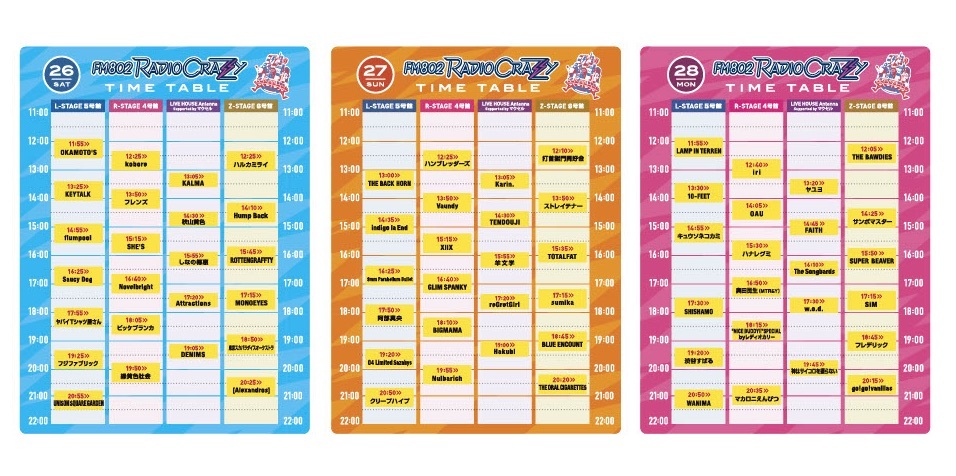 12月26日(土)、27日(日)、28日(月)の3日間、インテックス大阪にて開催されるFM802が毎年年末に送るロック大忘年会『FM802 RADIO CRAZY』のタイムテーブルが発表された。