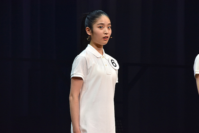 最後に1人ずつの歌唱審査。課題曲はミュージカル『ヘアスプレー』の代表曲「You can't stop the beat」。これを日本語で歌唱する。音域が広くリズムが早く、歌唱の実力がはっきりと見えてしまう難しい課題だった。